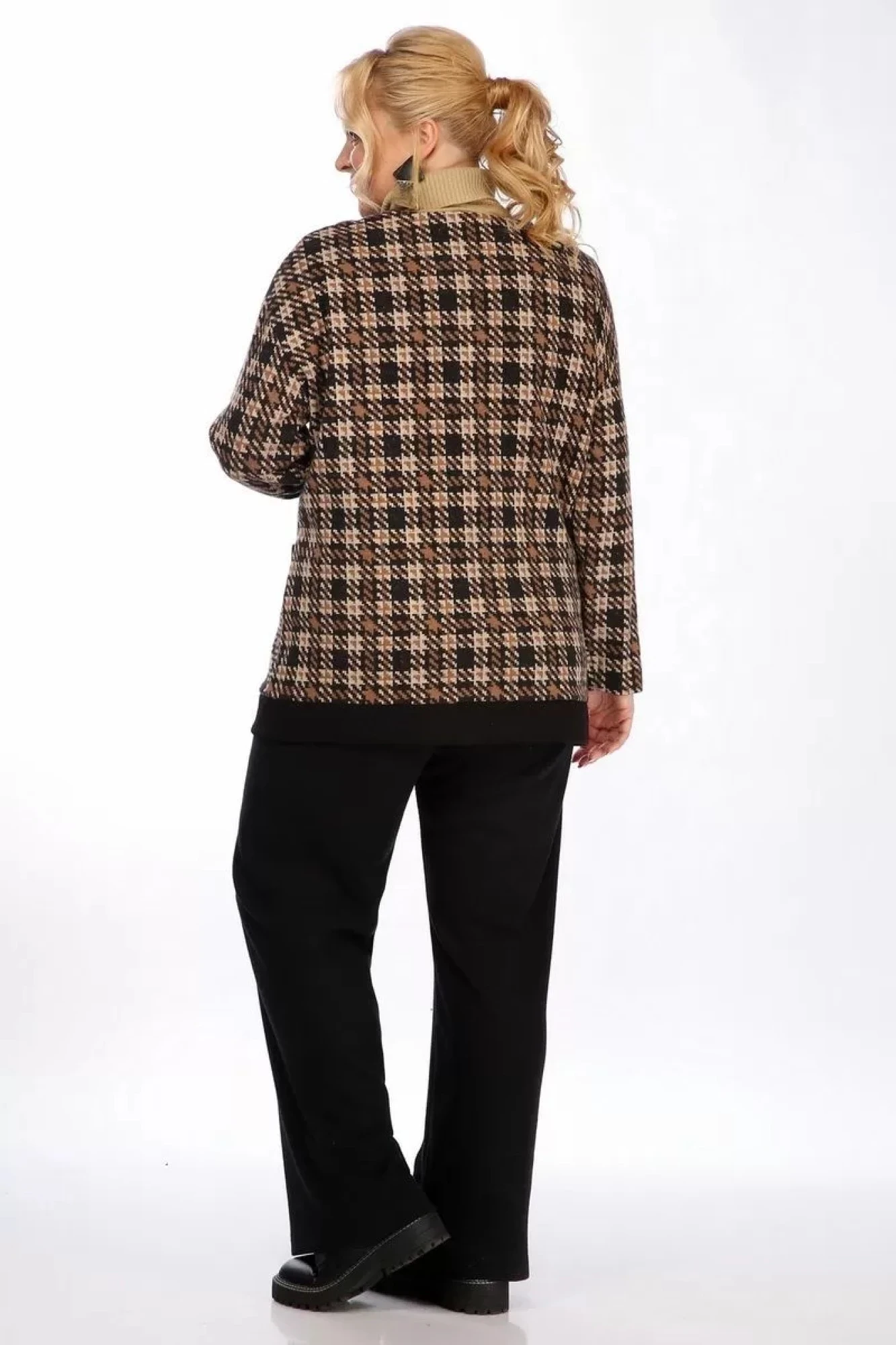 Комплект брючный 2-х предметный свободного силуэта состоит из кардигана и брюк. Комплект изготовлен из трикотажного полотна. Кардиган с накладными карманами, с планками из отделочной ткани. Брюки прямые, пояс на резинке.