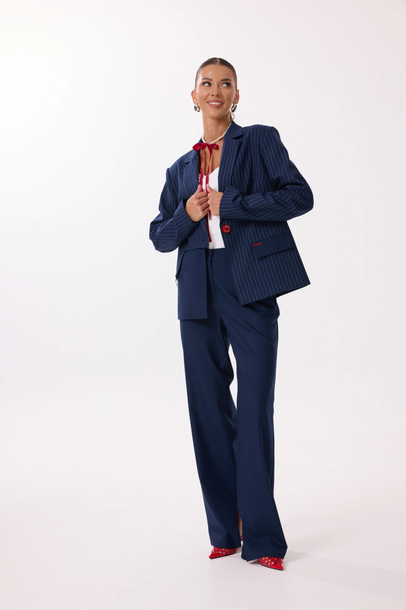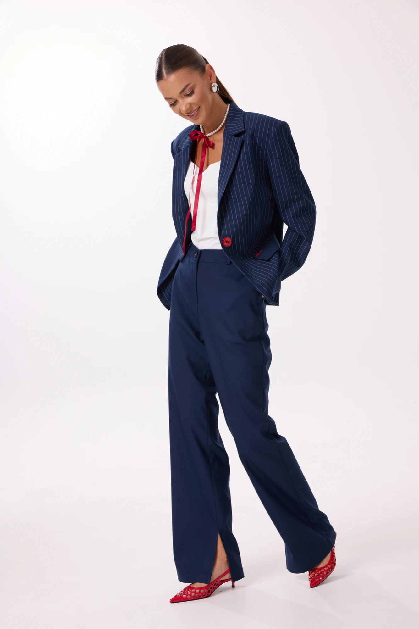 Длина жакета по спинке 44р. - 63 см, 54р. - 64 см. Длина брюк по боковому шву 113 см.