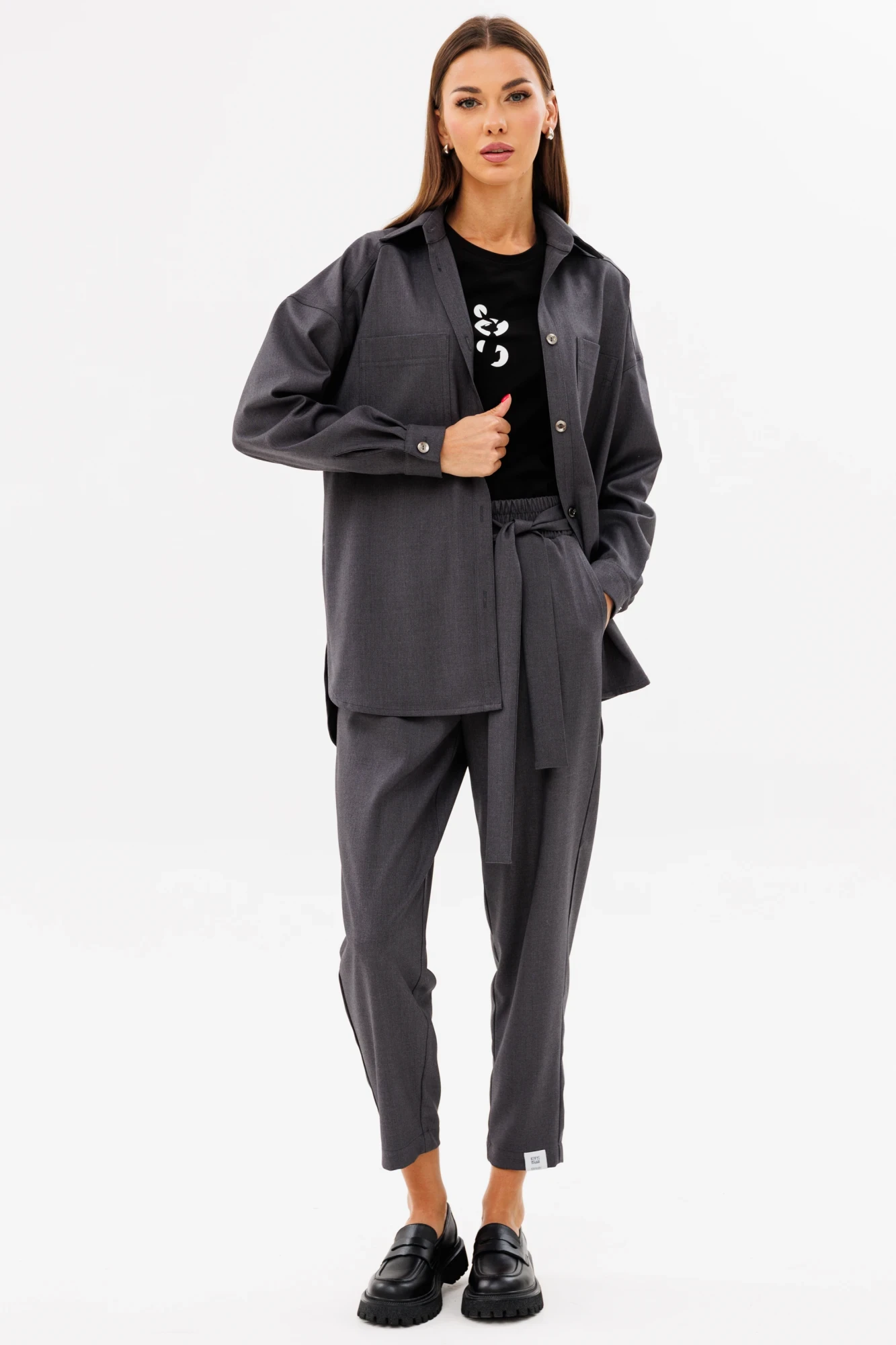 Представляем костюм состоящий из блузы и брюк. Блуза свободного кроя, которая идеально сочетает в себе элегантность и комфорт. Брюки свободного кроя “Urban Elegance” – идеальное сочетание офисной строгости и свободного спортивного стиля. Этот костюм изготовлен из высококачественной костюмной ткани, что обеспечивает ему долговечность и элегантный внешний вид.