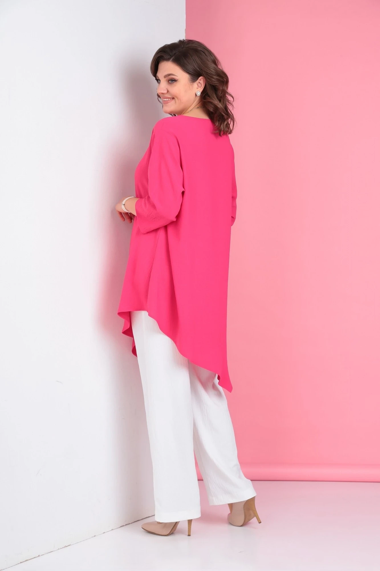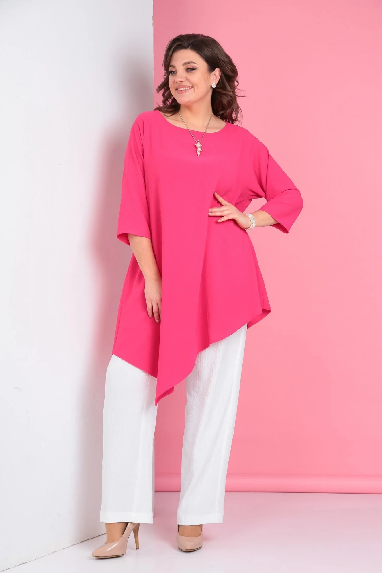 Брючный костюм Ладис Лайн 1299 фуксия+белый двойка