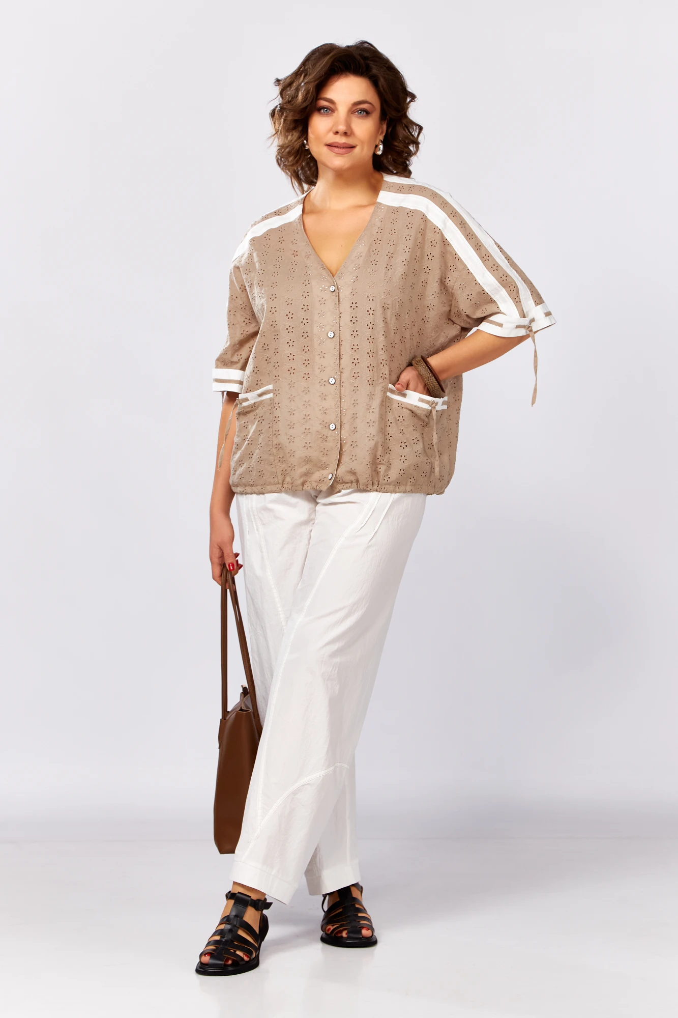 Брючный костюм Lady Secret 25204 Капучино+ Белый двойка