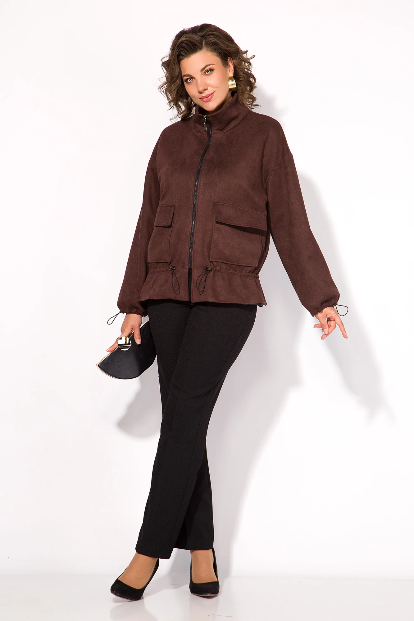 Откройте для себя идеальный женский жакет — универсальную вещь, которая подчеркнет ваш стиль и добавит уверенности! Модель свободного силуэта, на спущенной линией плеча. Рукав полной длины, с кулиской по низу. Воротник – стойка, переходящая в застежку молнию. По полочке расположены накладные карманы с клапаном. Чуть ниже линии талии расположена кулиска для более комфортного прилегания! Изделие на шелковой подкладке. В комплекте классические женские брюки, со средней посадкой, прямого покроя от бедра. Застежка – брючная тесьма-молния с обработанным гульфиком. Карманы боковые. Пояс притачной, в боковых участках вставлена резинка на свободу. По переду заутюжены канты. Спинка с Талиевыми выточками. Подгибка брюк –– 4 см.