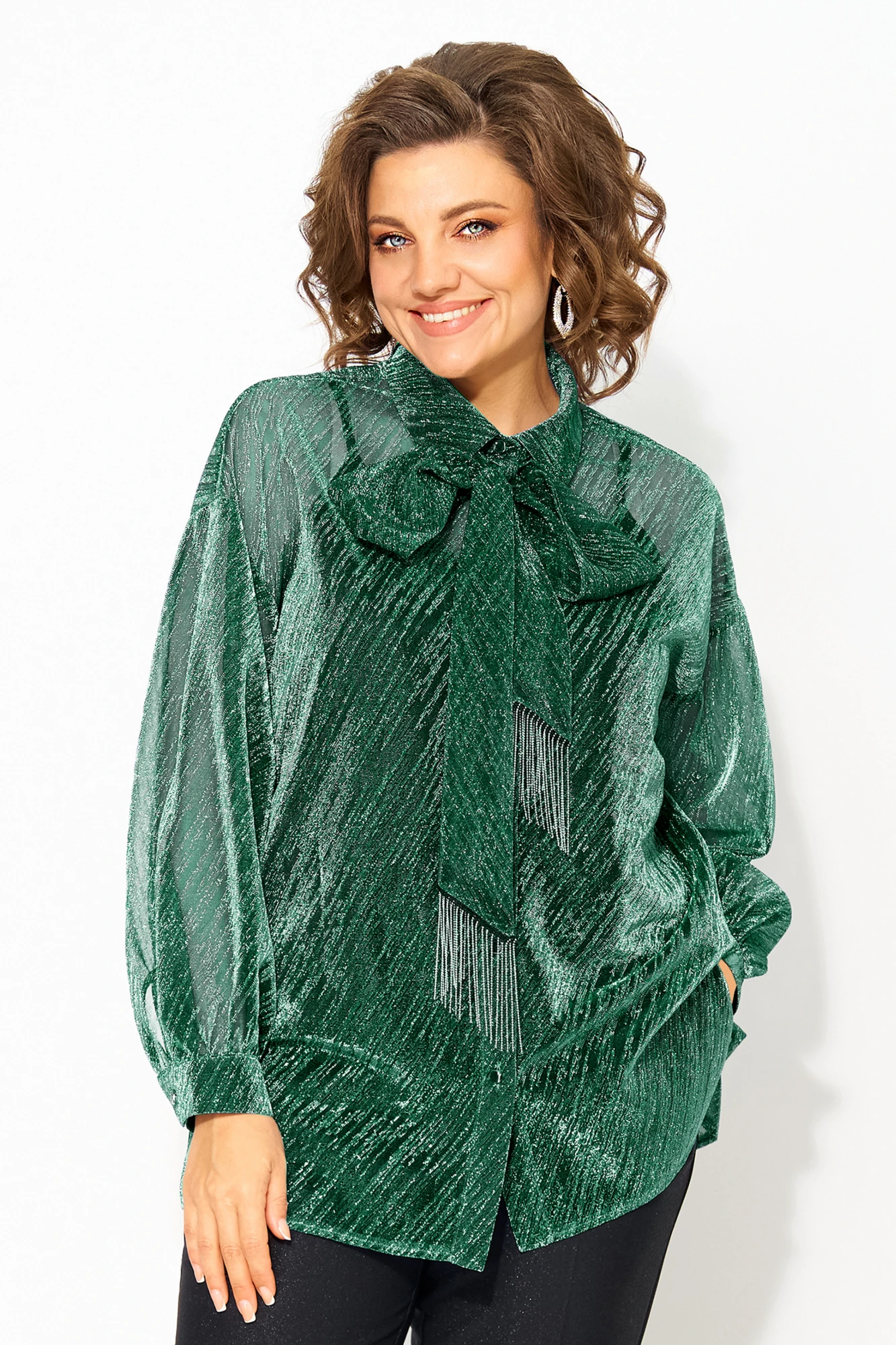Трендовая блузка из легкой сетчатой ткани c эффектом мерцания станет стильным дополнением вашего гардероба. Ее можно комбинировать с различными элементами гардероба, накинуть поверх платья или топа. Модель выполнена с воротником-стойкой, который добавляет элегантности образу. Застежка центральная на петли и пуговицы. По бокам расположены разрезы. Свободный крой обеспечивает комфорт и подчеркивает женственность. Длинный рукав с манжетами делает ее универсальной для любого сезона, а удлиненный силуэт добавляет изысканности. В комплект входит съёмный пояс с декоративной бахромой, который может служить в виде шарфика и добавить элегантность образу.