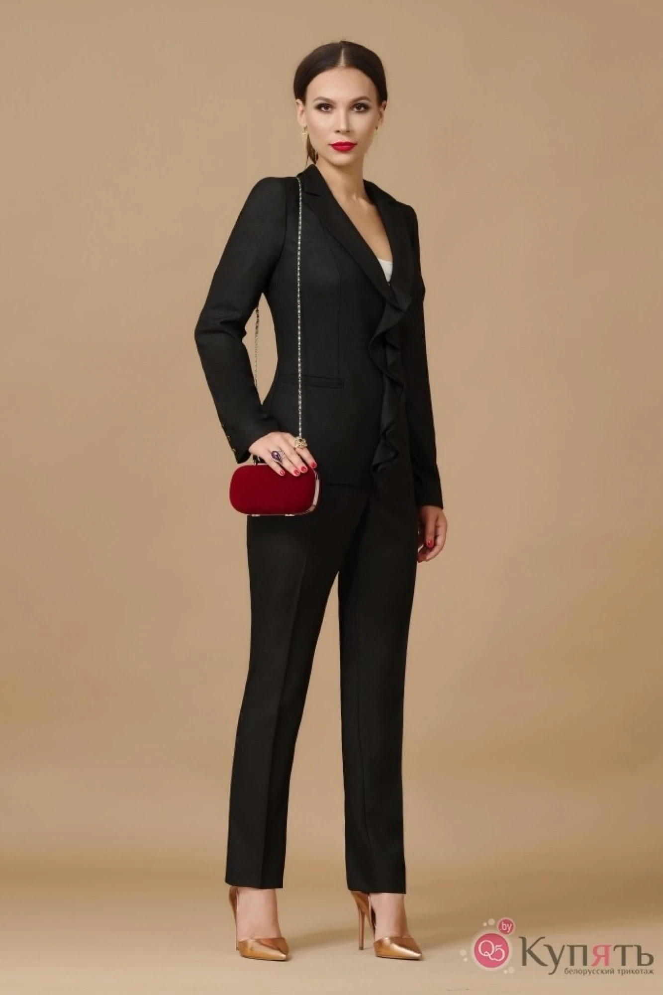Дизайнерский костюм в стиле «Fast- Fashion» создаст неповторимый модный образ и подчеркнет ваш индивидуальный стиль. Модный покрой , оптимальное сочетание классики и модных элементов с итальянских подиумов. Прекрасно сочетается с разными аксессуарами. Жакет из мягкой костюмной ткани (на подкладке) . Рукав втачной. Спинка с талиевыми вытачками и средним швом. Застегивается на металлическую черную молнию (Молния разъемная), застежка в среднем шве переда. Брюки с отрезным поясом из мягкой костюмной ткани, по бокам на резинке.