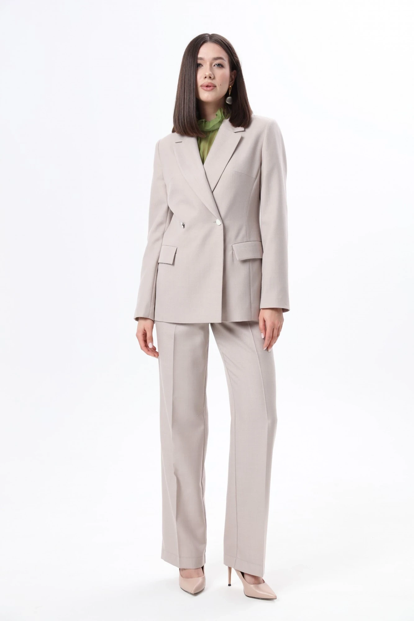 СОВЕТ ОТ СТИЛИСТА: для прохладных дней надевайте под жакет водолазку , а из обуви можно подобрать кеды или ботинки на платформе. Для более романтичного образа советуем укомплектовать блузкой из нашей коллекции , а из обуви подобрать ботильоны на каблуке.