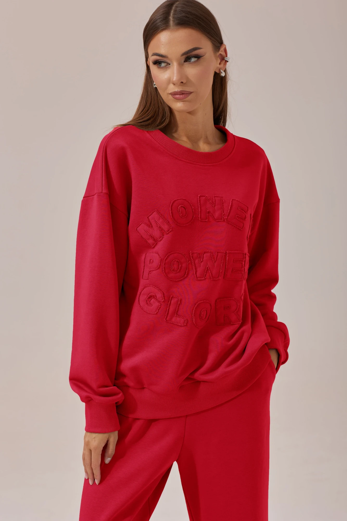 Стильный костюм состоящий из джемпера и брюк.