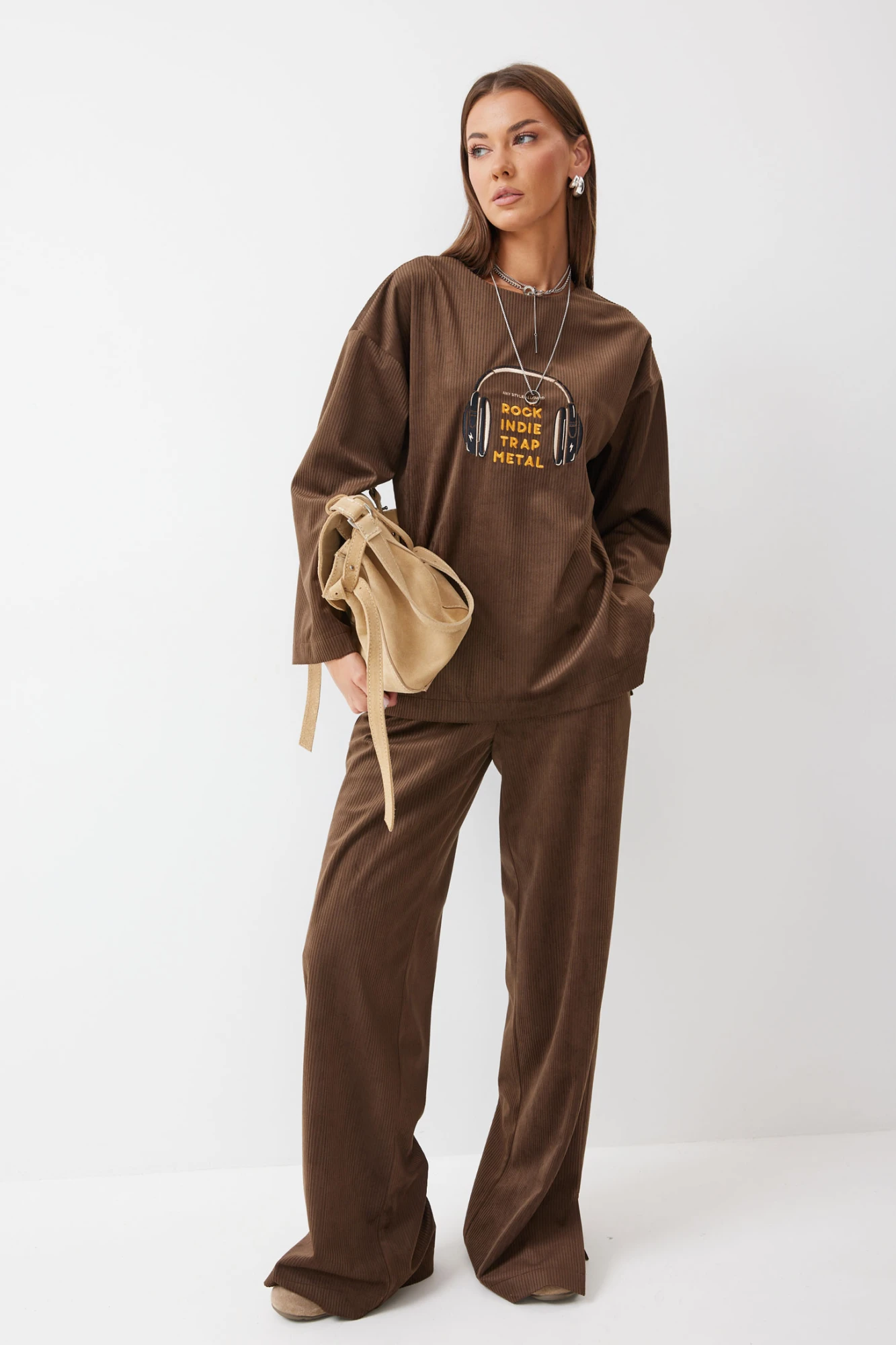 Джемпер прямого силуэта из костюмной ткани. Горловина округлая, на спинке застежка в среднем шве. Рукав со спущенной линией плеча длинный. По низу джемпера в боковом шве шлица.