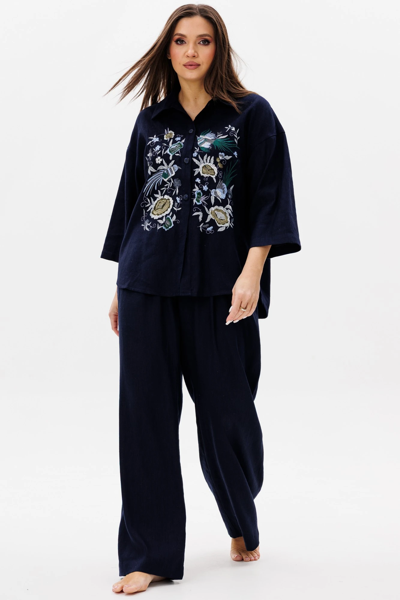 "Льняной двухпредметный костюм Ma Cherie, состоящий из рубашки и брюк.