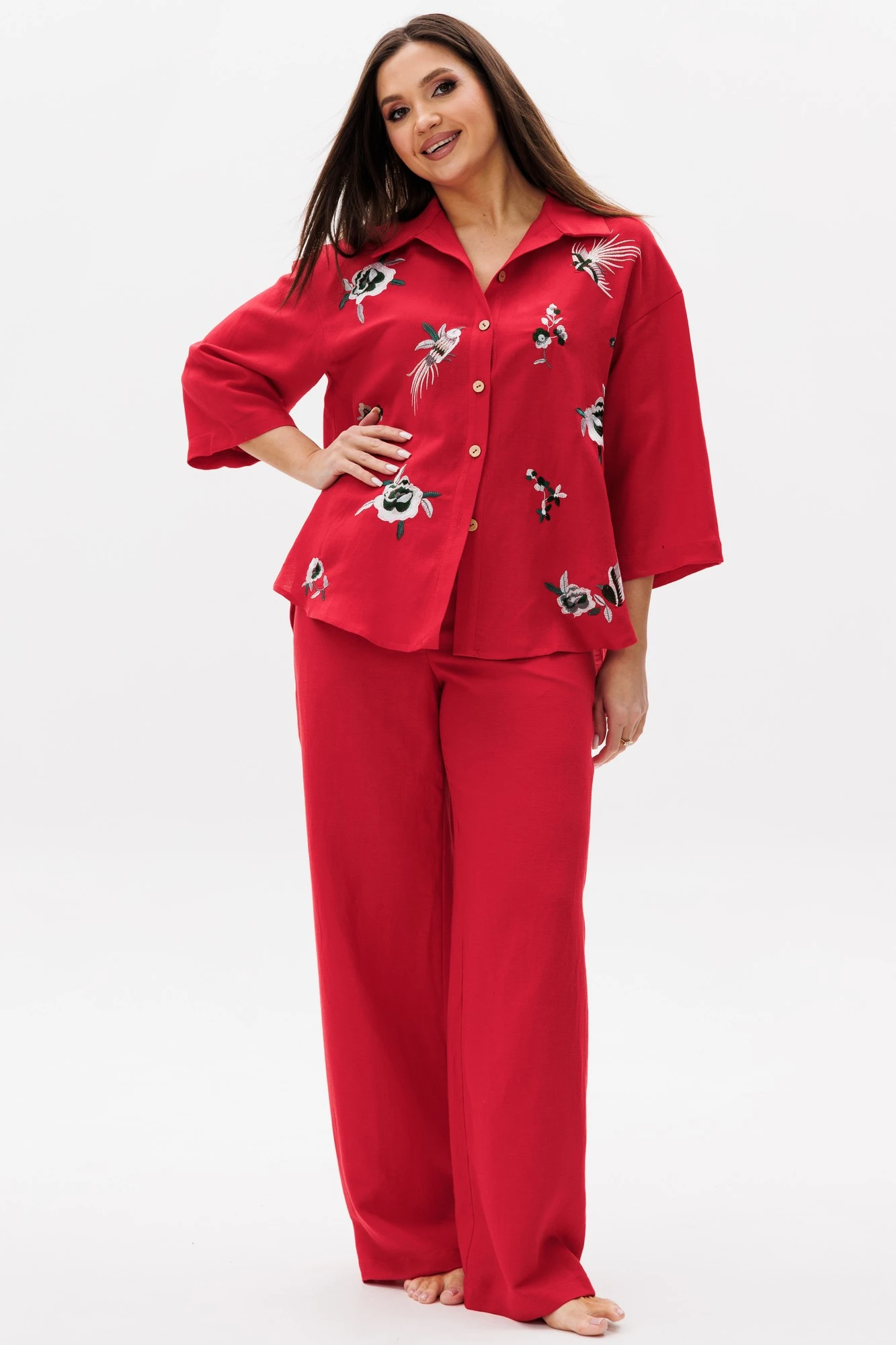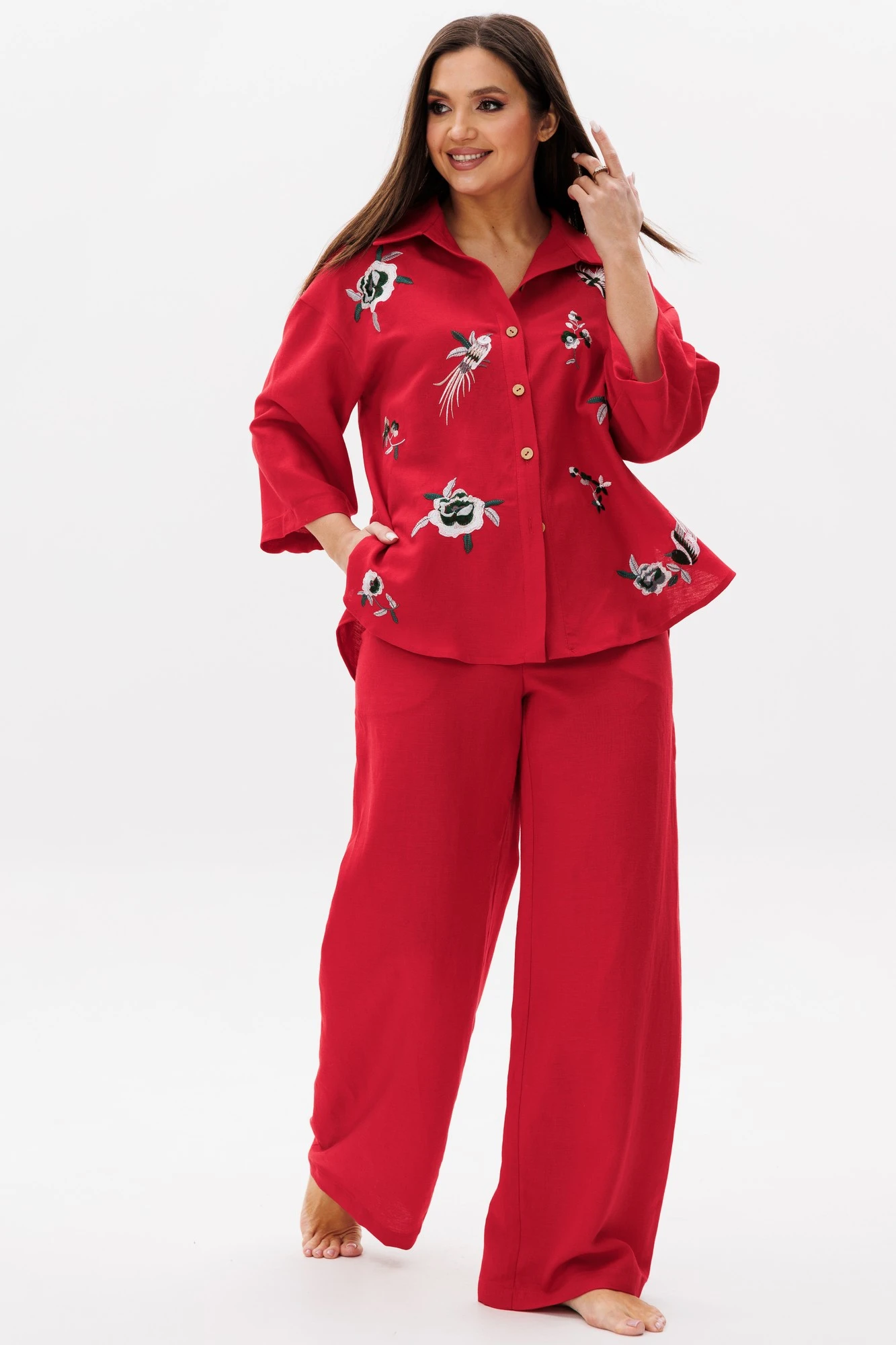 "Льняной двухпредметный костюм Ma Cherie, состоящий из рубашки и брюк.