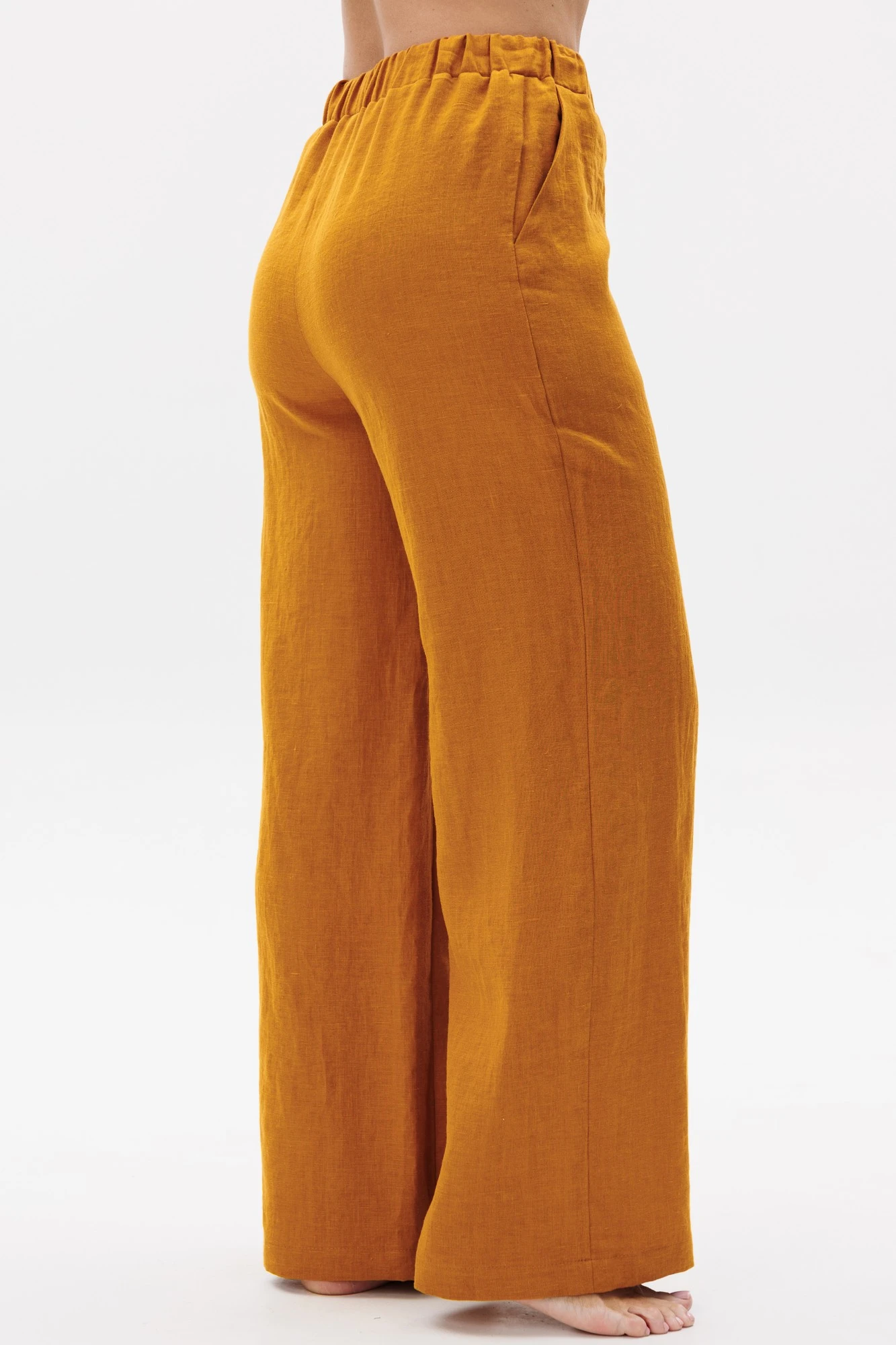Брюки-палаццо. Пояс притачной на резинке. Передняя половинка брюк с функциональными карманами с диагональным входом.