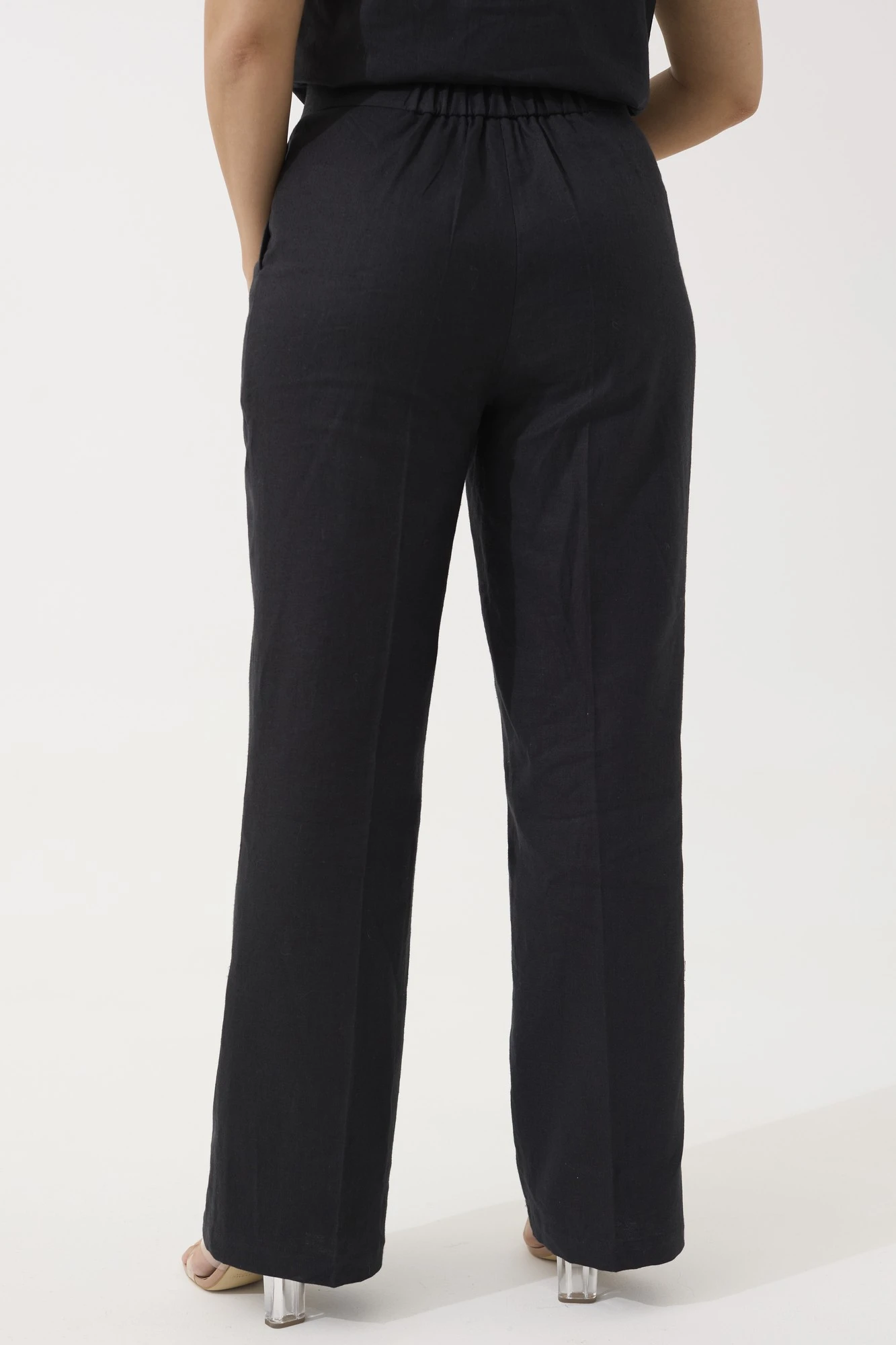 Брюки классические прямые. Пояс притачной с резинкой по спинке, застежка-гульфик на молнию и петлю с пуговицей. Перед с функциональными карманами с диагональным входом.