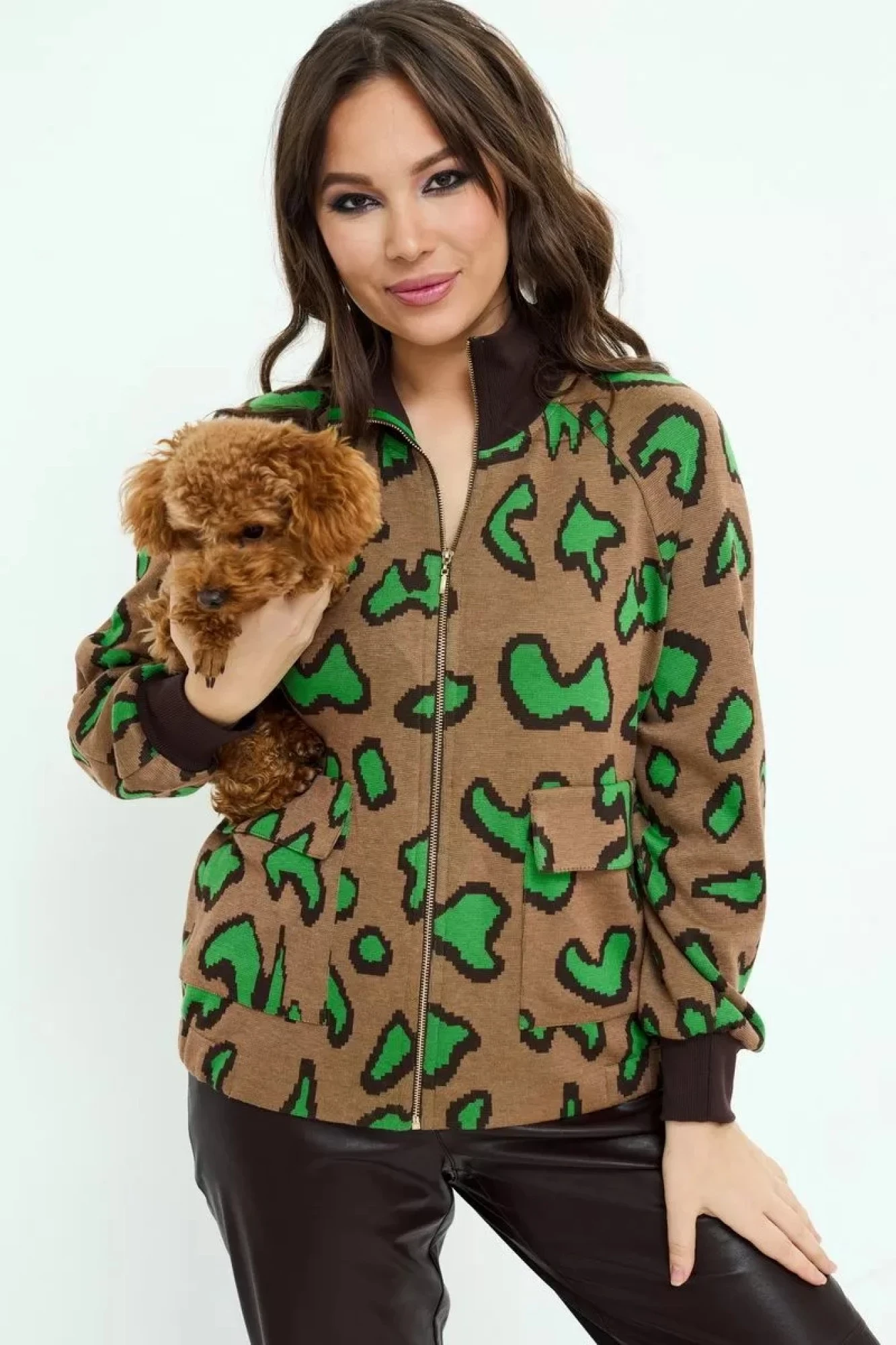 Брючный костюм Магия Моды 2200 зеленый+коричневый двойка