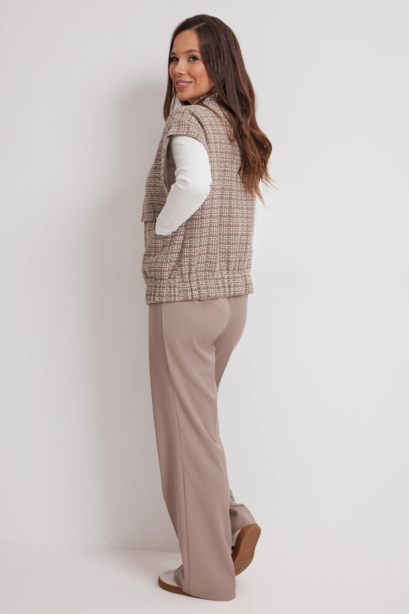 Брючный костюм Магия Моды 2624 коричневые тона+ молочный тройка
