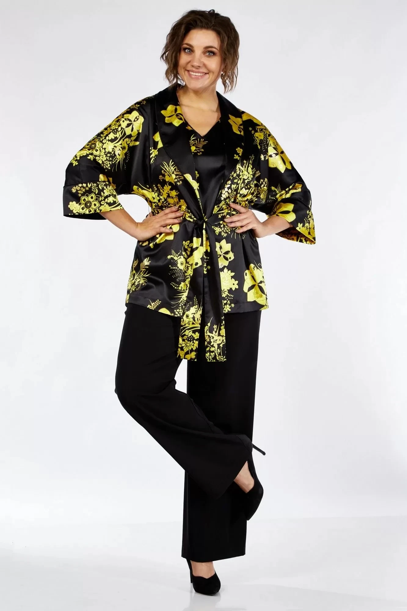 Блузка и жакет-кимоно 100 пэ. Брюки пэ 95, спандекс 5.