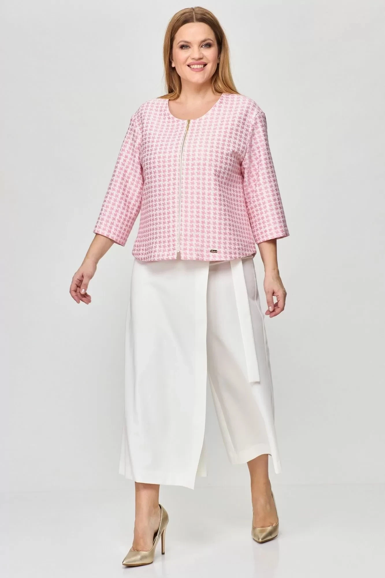 Летний брючный костюм Michel Chic 1335/1 розовый, белый двойка
