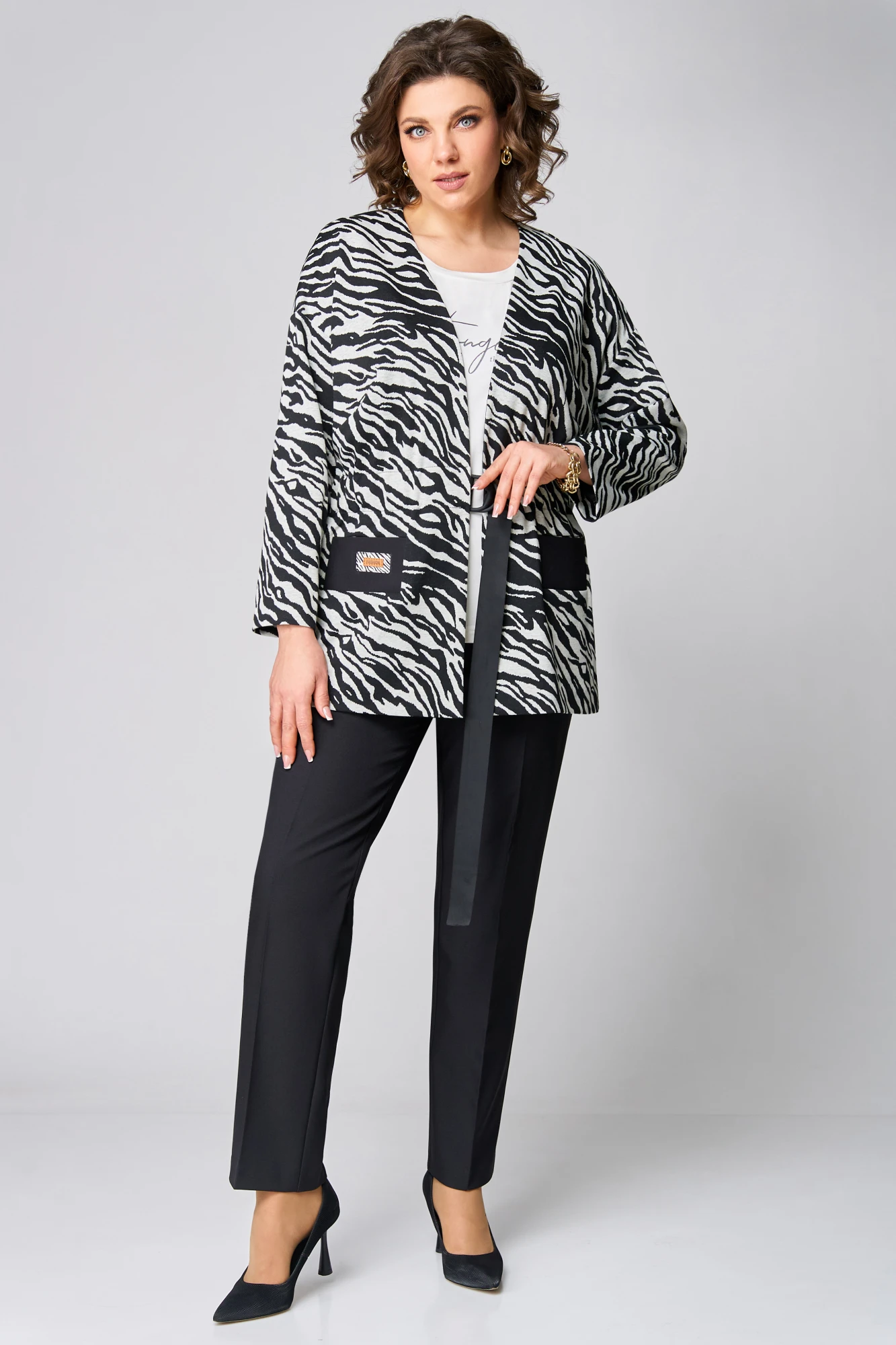 Брючный костюм Мишель Стиль 1100-2 черно-молочный тройка