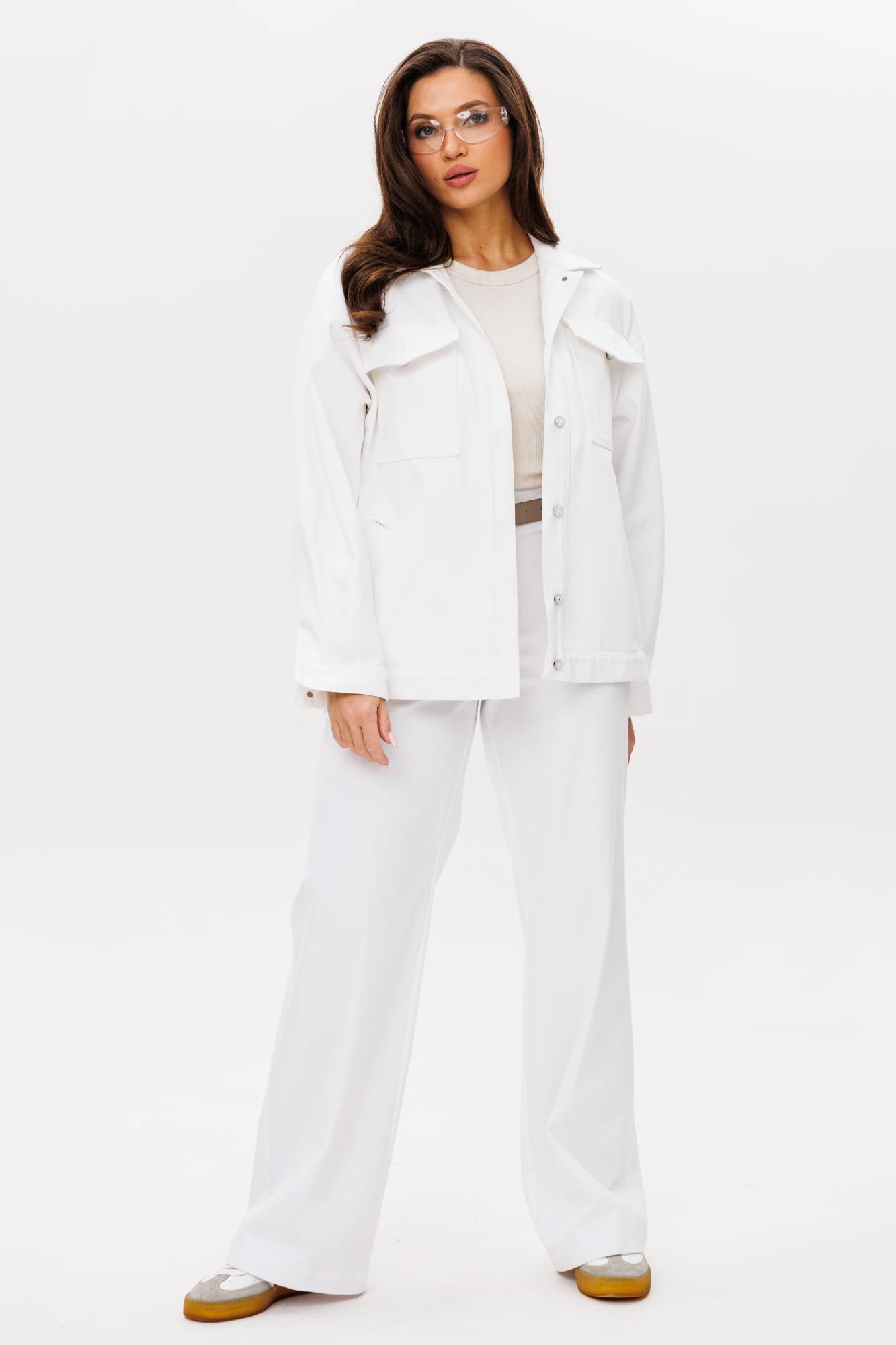 "Костюм женский свободного силуэта состоит из жакета и брюк. Легкий белоснежный джинс.