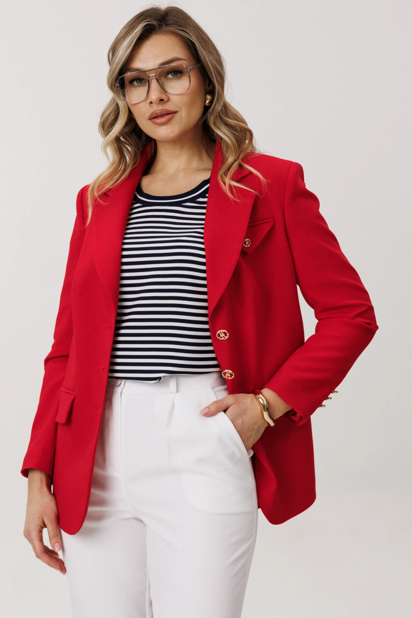 Брюки: ПЭ 96%, спандекс 4% Жакет: ПЭ 65%, вискоза 33%, спандекс 2% Топ: ПЭ 95%, эластан 5%