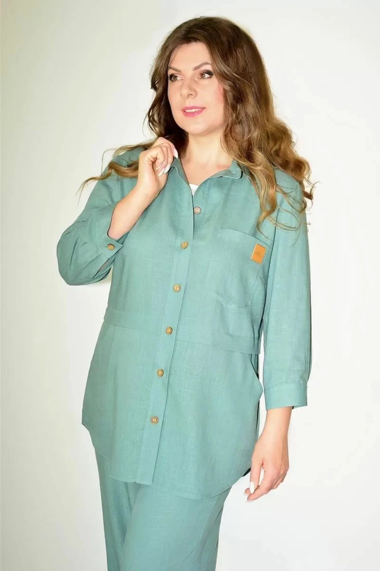 Костюм женский двухпредметный повседневный, состоящий из блузки и брюк. Костюм из смешанной однотонной средней плотности костюмной ткани, в состав которой входит хлопок.
