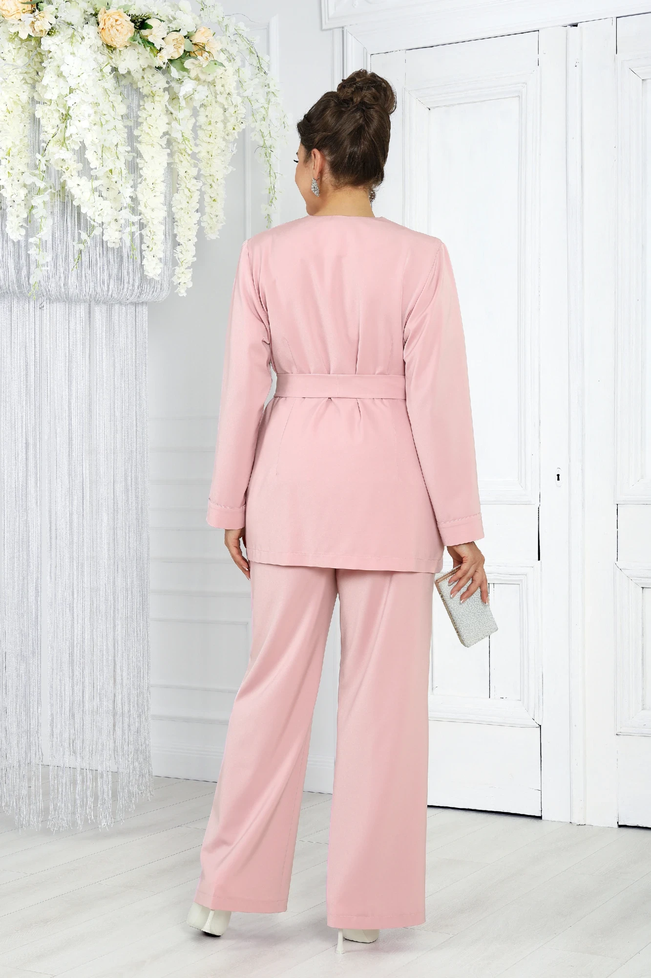 Брючный костюм Нинель Шик 6033 пудра тройка