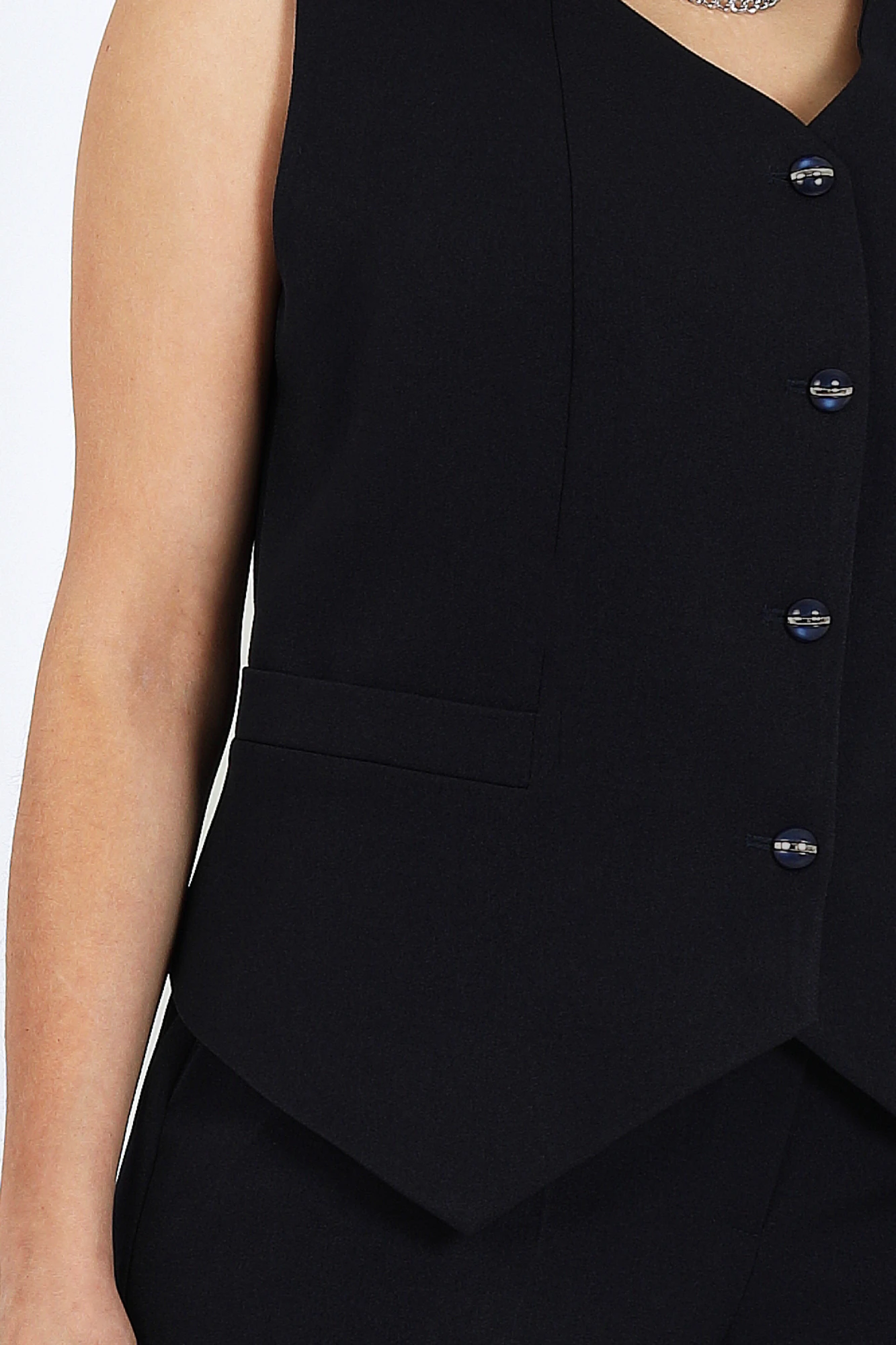 Создайте безупречный образ с элегантным брючным костюмом, который сочетает классику и современный стиль. Этот костюм – универсальное решение для офисного гардероба, деловых встреч и торжественных мероприятий. Достоинства модели: безупречный крой для идеальной посадки, материал устойчив к износу и прост в уходе, подходит для любого сезона и событий – от офиса до праздников. Этот костюм классика, которая никогда не выйдет из моды. Комплект брючный 3-х предметный, состоящий из жакета, жилета и брюк. Жакет классический, на подкладке, выполнен из костюмно-плательной ткани «поливискоза». Модель полуприлегающего силуэта с отложным воротником и лацканами «ласточкино крыло», с однобортной внешней застежкой на 2 декоративные пуговицы. Перед с вертикальными рельефными швами от плечевого шва до низа, проходящими через центр груди; с горизонтальными прорезными карманами в рамку, расположенными ниже линии талии, и имитацией кармана с листочкой в левой верхней части переда. Спинка с вертикальными рельефными швами; в нижней части среднего шва обработана шлица. Рукав длинный, втачной, двухшовный. Длина жакета – 74 см. Длина рукава – 61 см. Жилет классический, на подкладке, выполнен из костюмно-плательной ткани «поливискоза», с однобортной внешней застежкой на 4 декоративные пуговицы. Линия низа жилета асимметричная – с удлиненными спереди углами и укороченная горизонтальная по спинке. Перед с фигурными рельефными швами, направленными от горловины к боковым швам; ниже линии талии, в горизонтальной части рельефа, – имитация карманов с листочкой. Спинка со средним швом и вертикальными рельефами, направленными от горловины до низа. Горловина округлой формы по спинке и V-образной по переду. Пройма углубленная, обтачная. Длина жилета – 51 см. Брюки классические, длинные, прямого силуэта, с посадкой на талии, выполнены из костюмно-плательной ткани «поливискоза». Модель со стрелками, с центральной застёжкой на тесьму-«молнию», на притачном поясе, застегивающемся на петлю и пуговицу. Передние и задние половинки брюк с талиевыми вытачками, направленными от пояса вниз. Спереди обработаны боковые наклонные карманы. Для лучшего прилегания брюк в области талии в поясе по задним половинкам вставлена эластичная лента. Длина брюк по боковому (с поясом) – 106 см (50-52 р-р), 107 см (54-58 р-р).