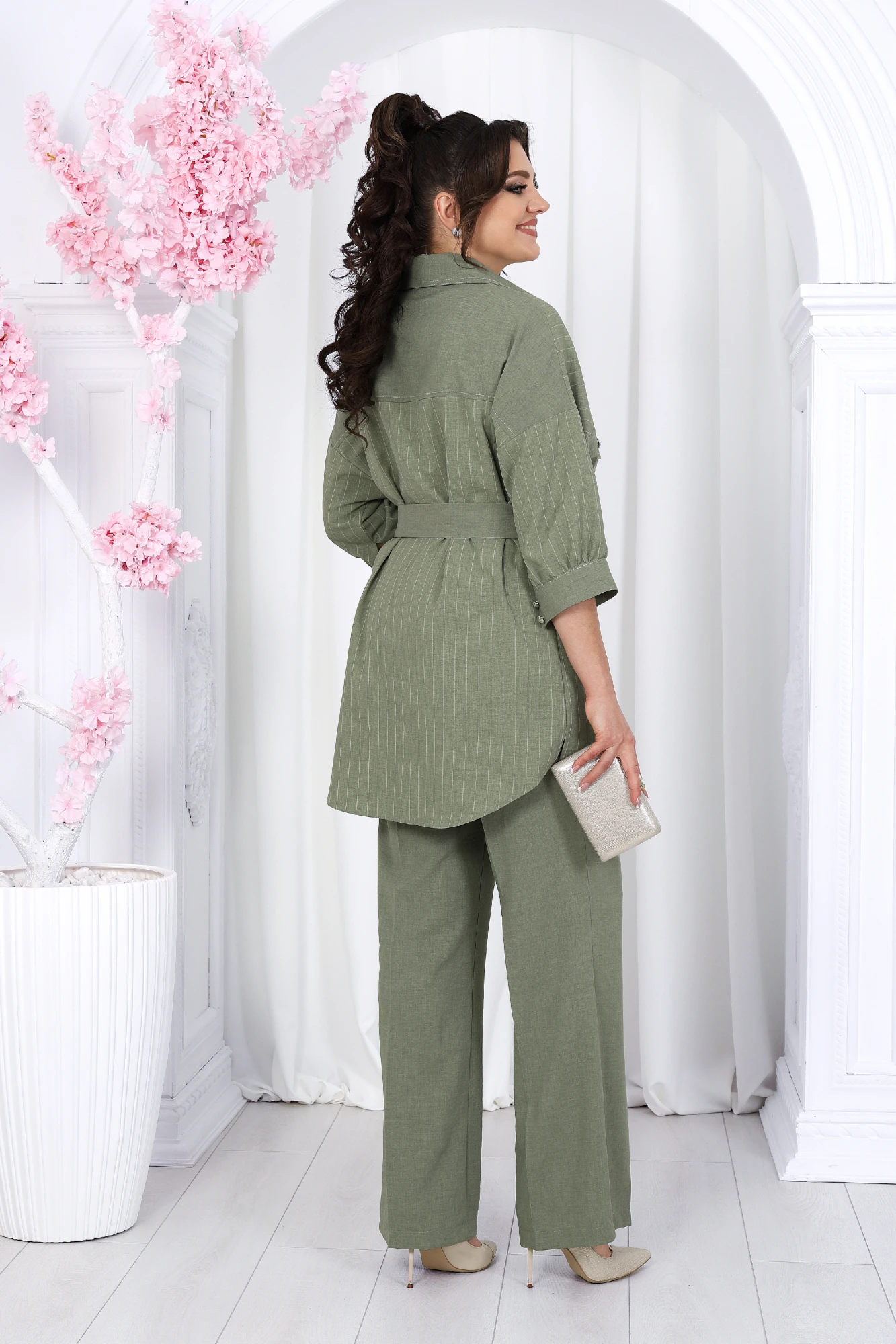 Брючный костюм Нинель Шик 6048 оливка тройка
