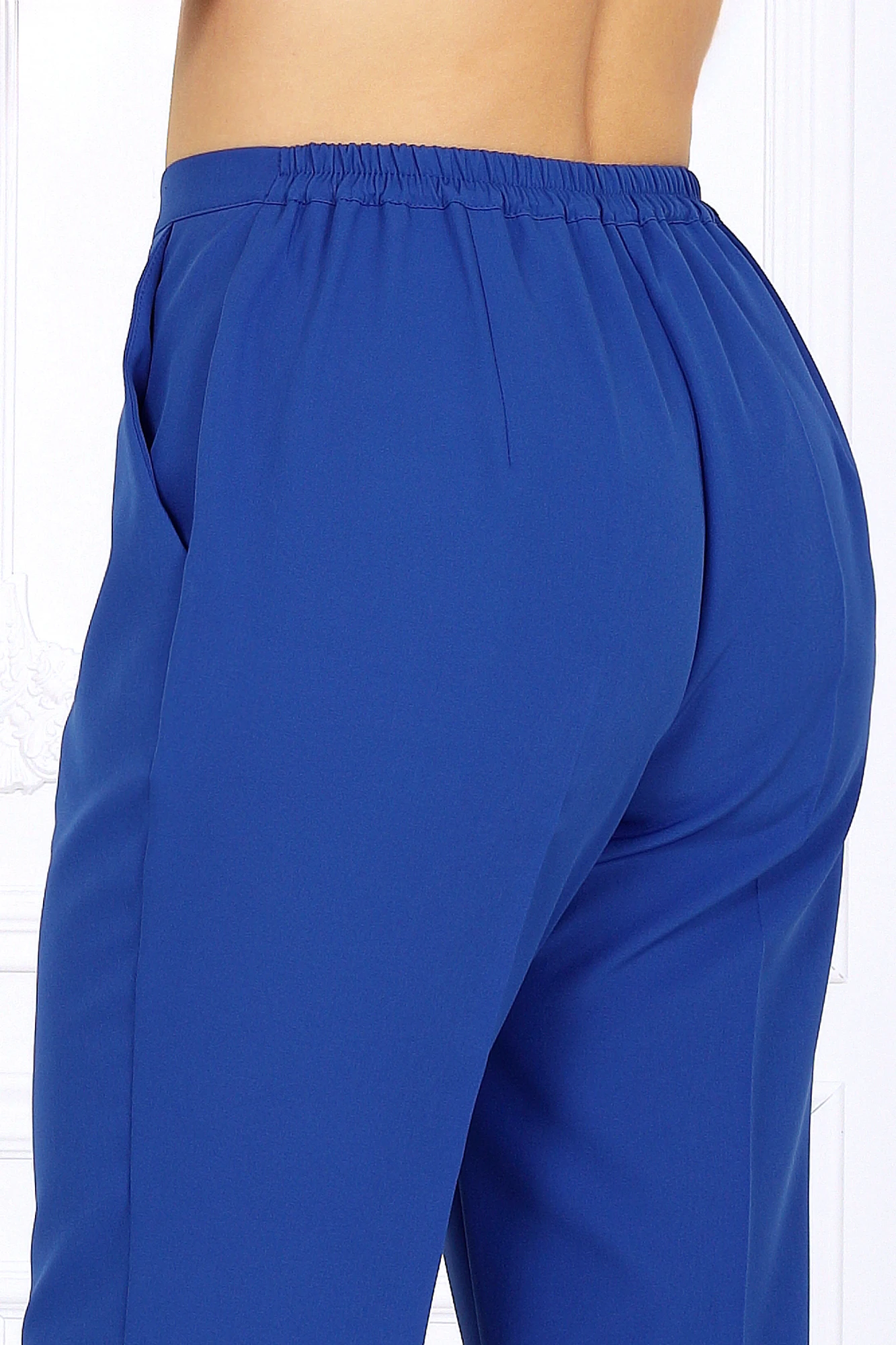 Брюки классические, длинные, с посадкой на талии, выполнены из костюмно- плательной ткани. Модель со стрелками. Передние и задние половинки брюк с талиевыми вытачками, направленными от пояса вниз. Спереди обработаны наклонные боковые карманы и центральная застёжка на тесьму-«молнию». Притачной пояс застегивается на 1 петлю и 1 пуговицу; для лучшего прилегания по линии талии в притачном поясе предусмотрена эластичная лента, вставленная по спинке. Длина брюк по боковому (с поясом) – 104 см (50 – 52 р-р), 105 см (54 – 58 р-р).