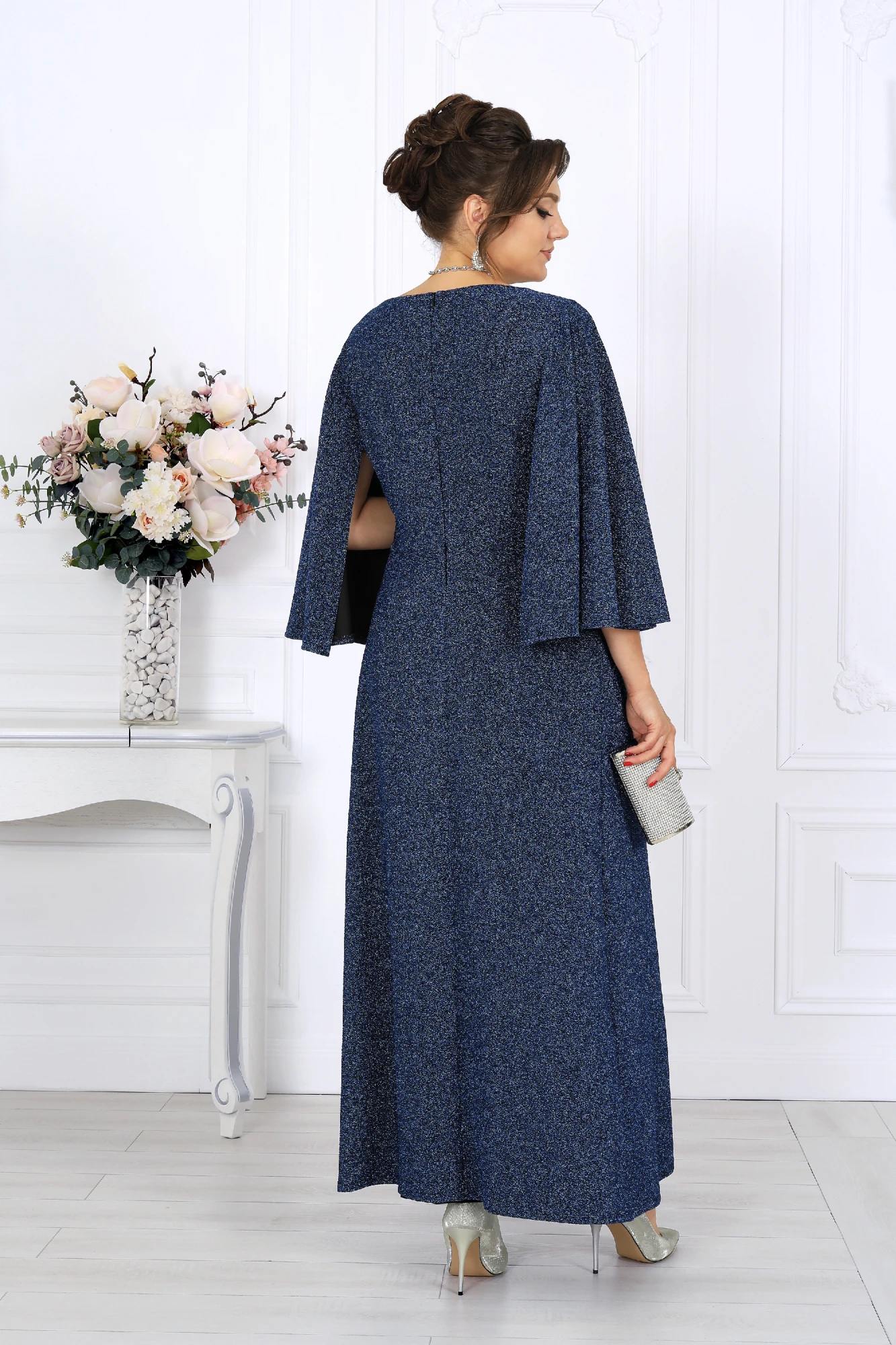 Туника свободно струится по фигуре, легко скрывая всё лишнее и подчеркивая достоинства. Драпировка по линии талии формирует красивый силуэт «песочных часов», а асимметричный запах добавляет образу динамики и утончённости. Эффектные рукава придают наряду торжественность, сохраняя при этом абсолютную лёгкость движений. Каждая деталь продумана до мелочей — от мягкой подкладки, обеспечивающей комфорт, до аккуратной потайной застёжки, сохраняющей чистоту линий.
