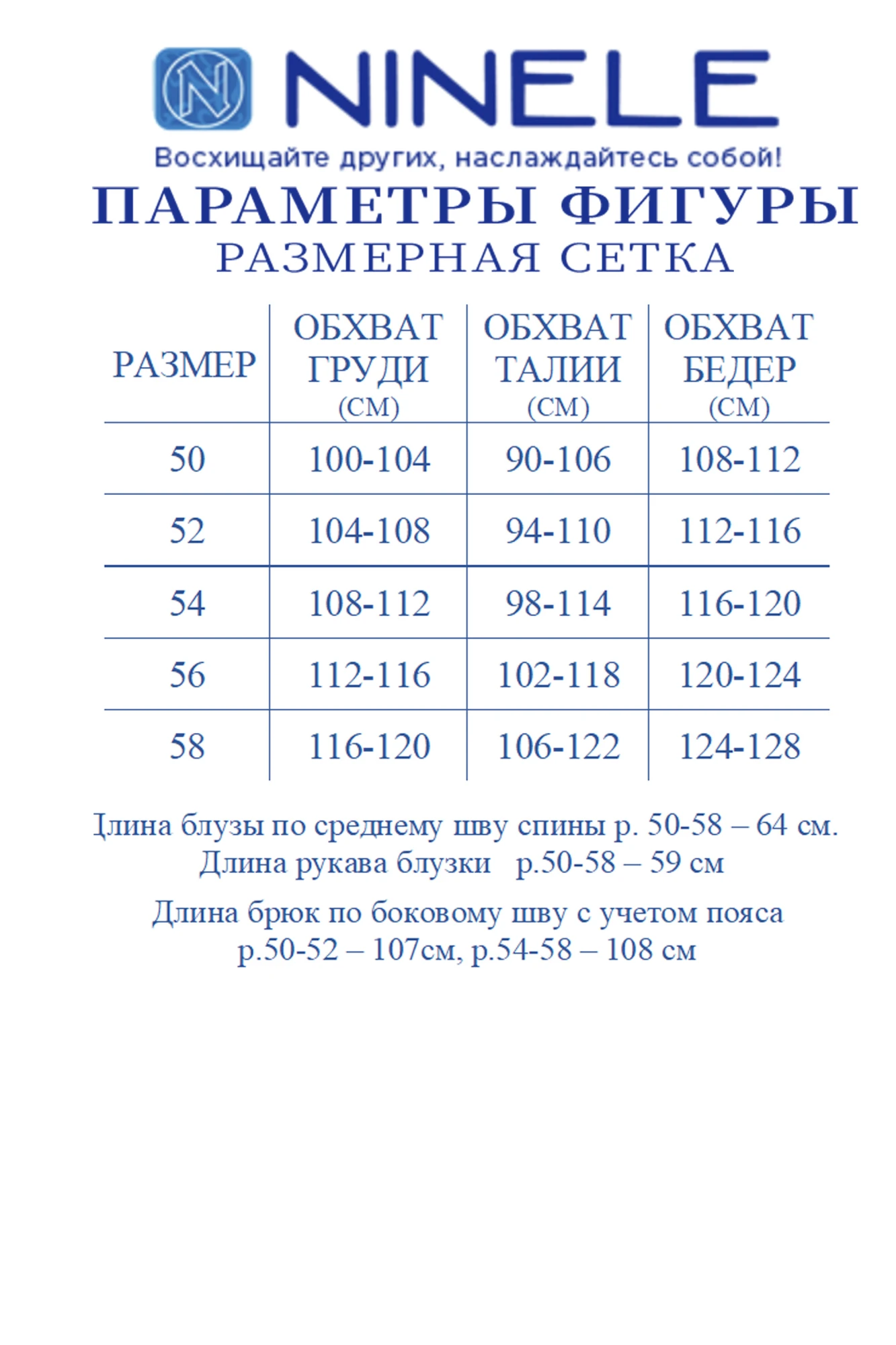 Таблица размеров