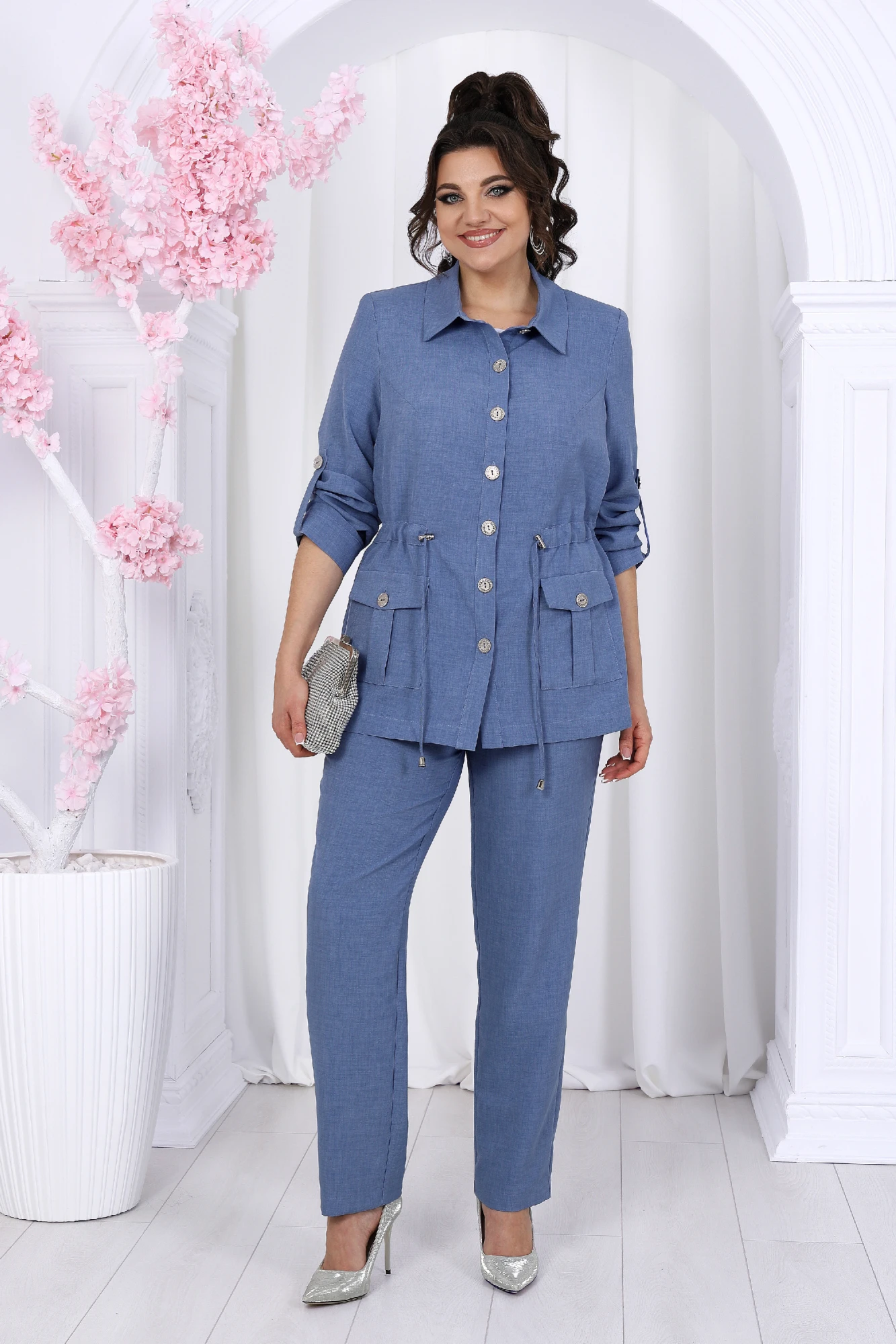 Брючный костюм Нинель Шик 7492 небесный тройка