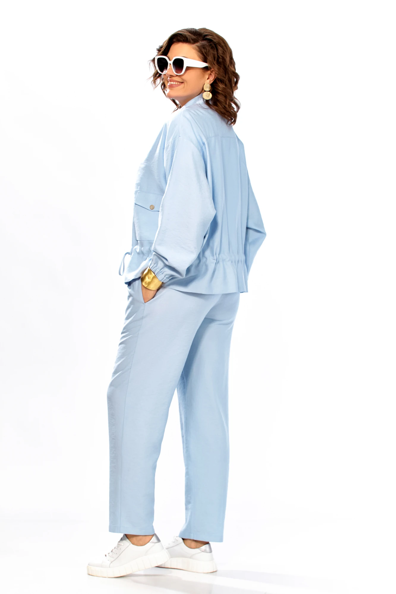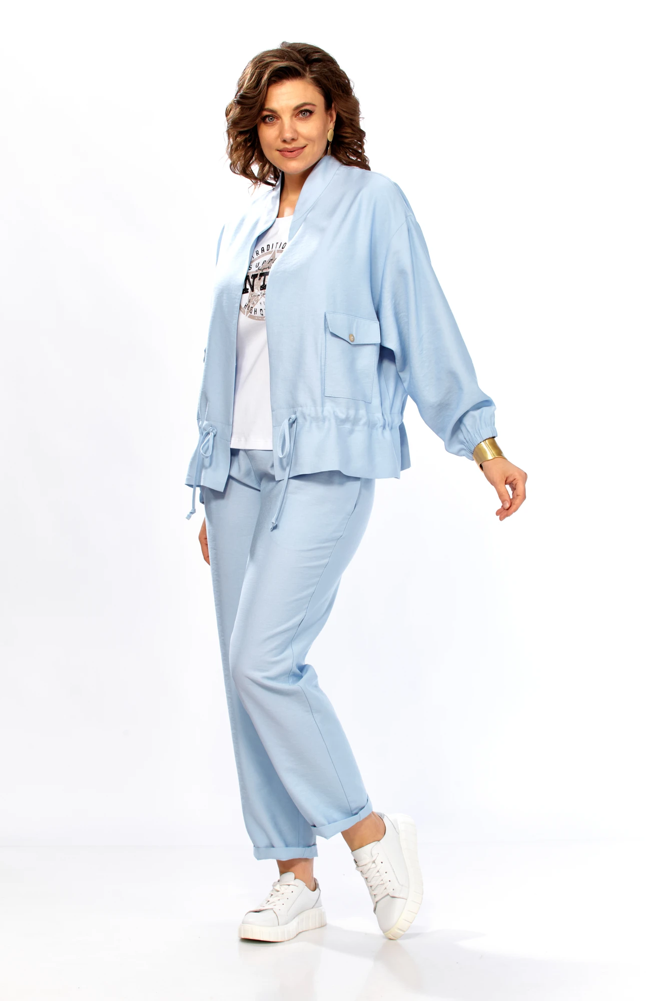 Брючный костюм Ольга Стиль 1011 голубой тройка