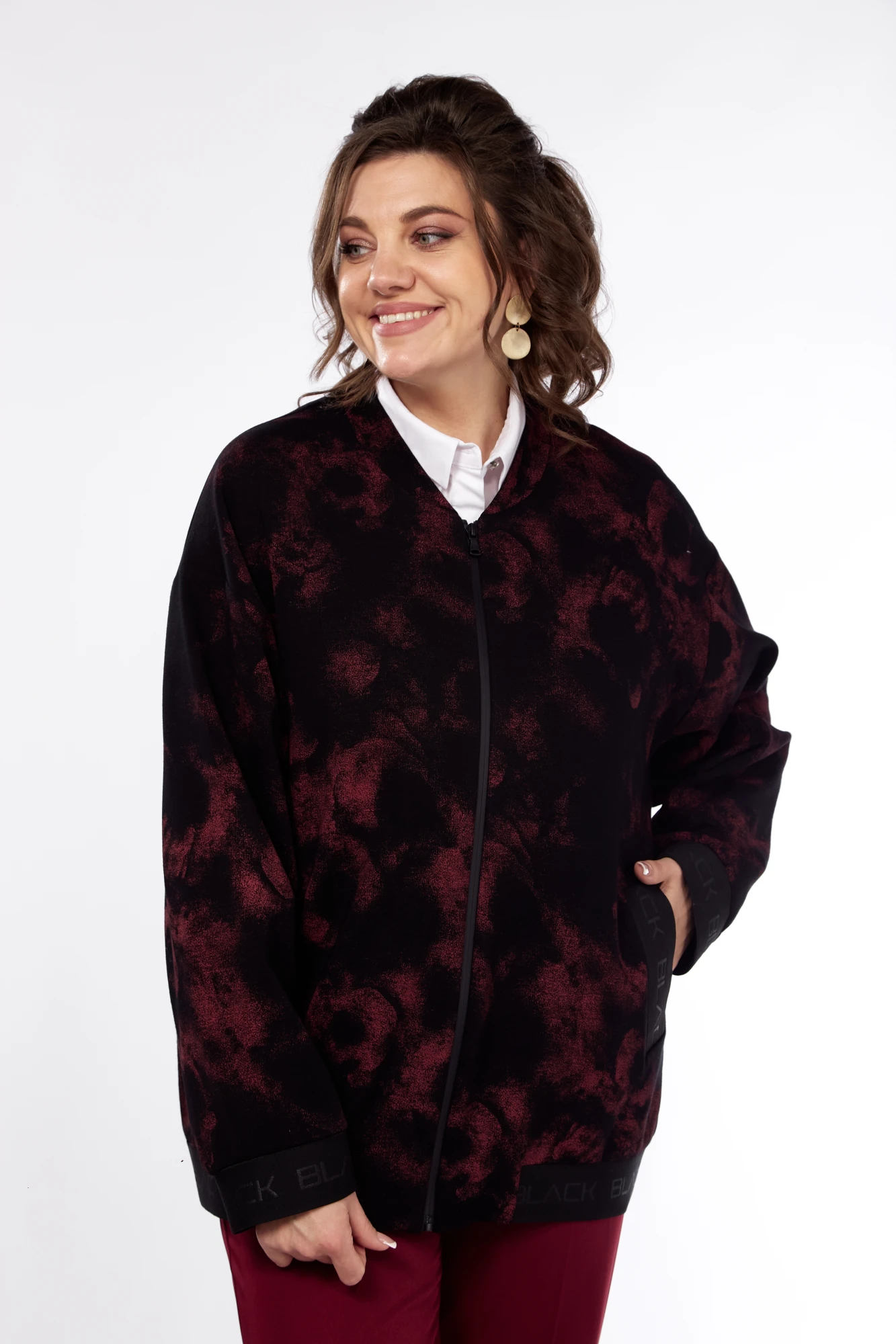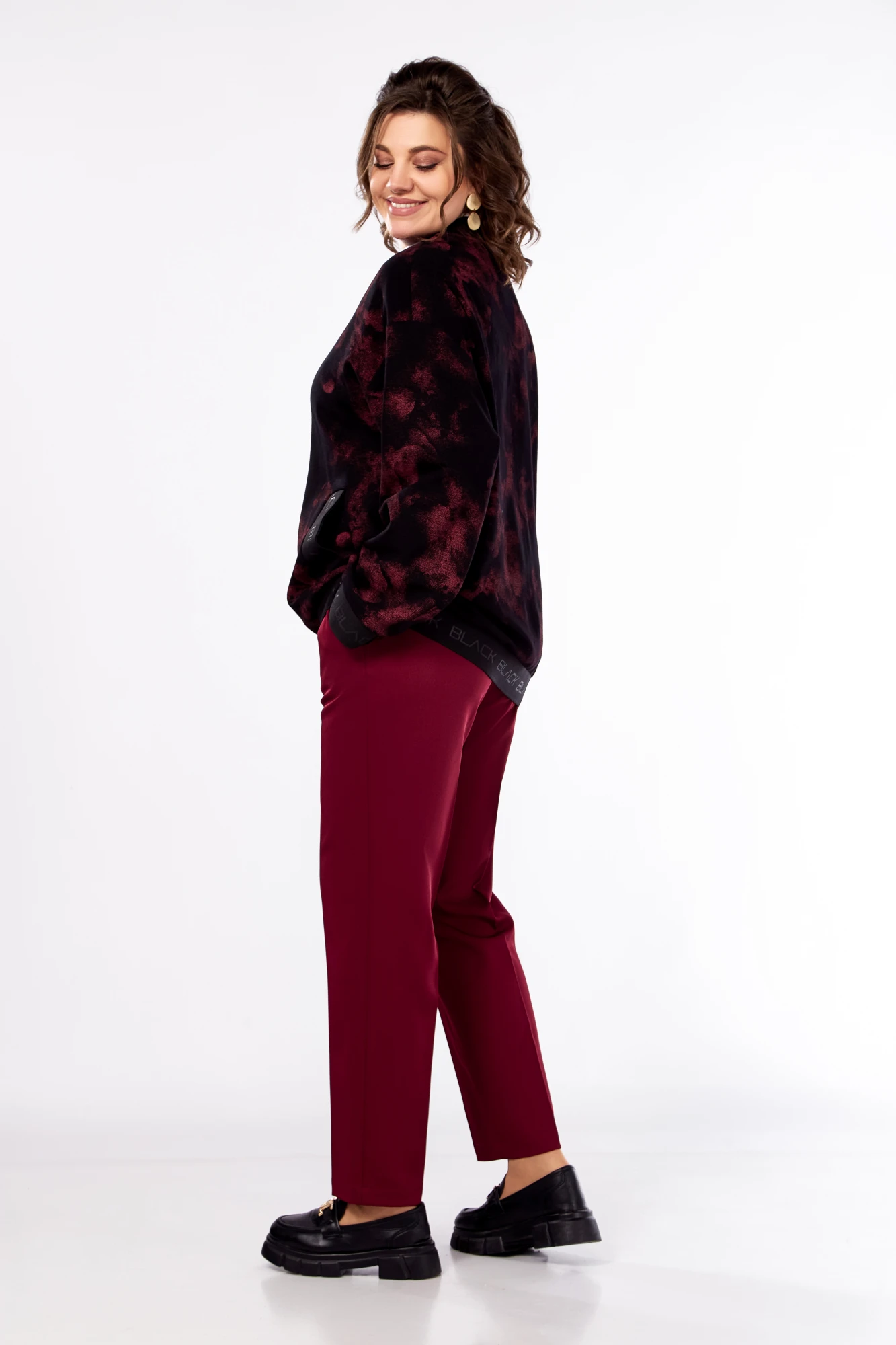Брючный костюм Ольга Стиль 907 черный-бордовый двойка
