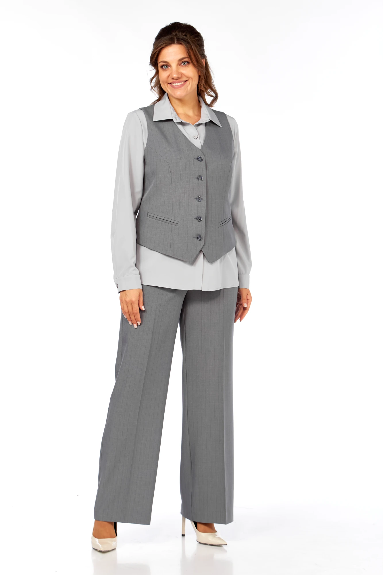 Брючный костюм Ольга Стиль 946 серый тройка