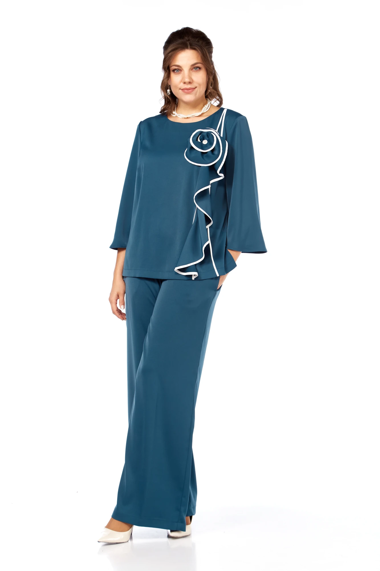 Брючный костюм Ольга Стиль 960 темная бирюза двойка
