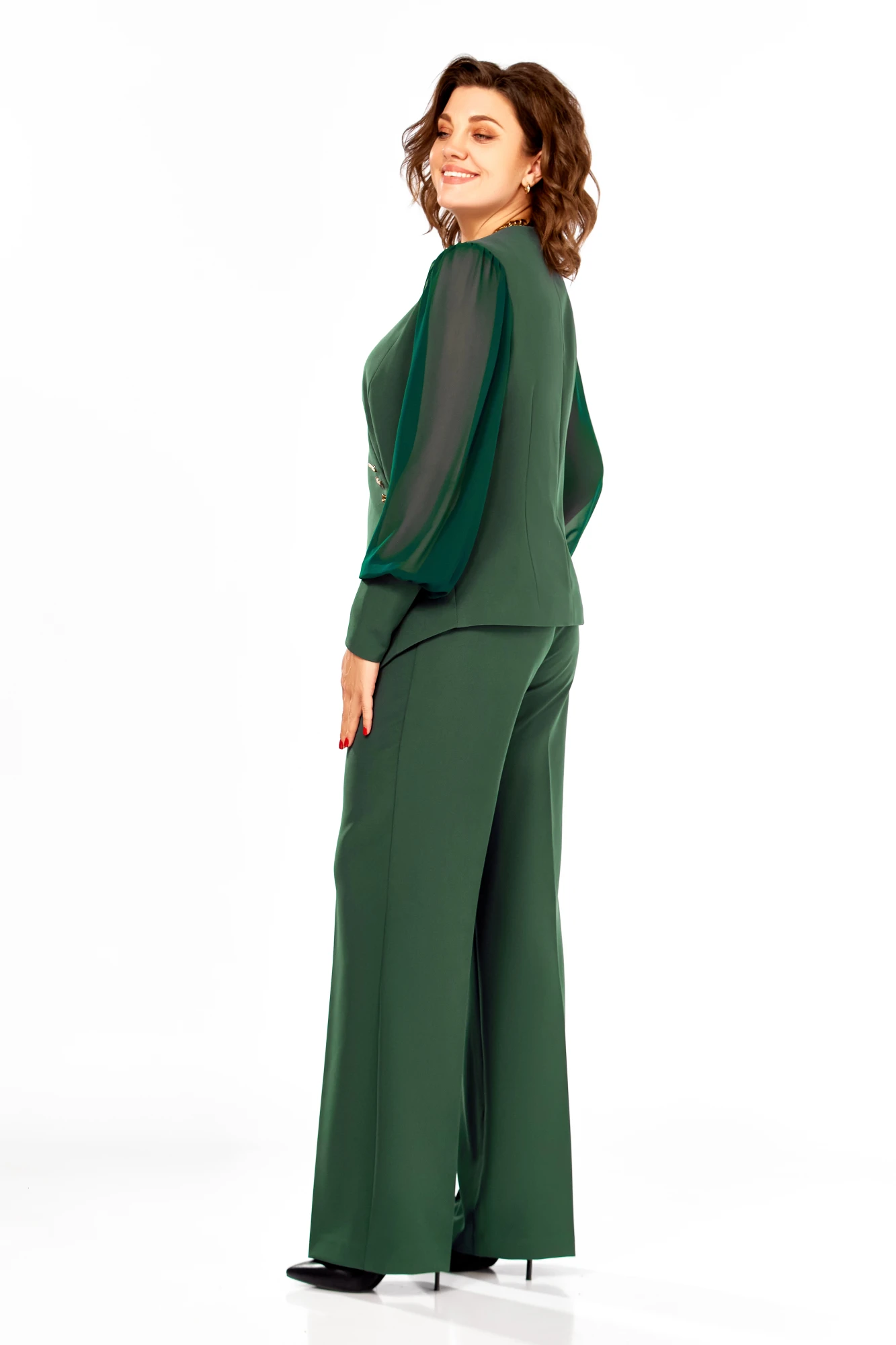 Брючный костюм Ольга Стиль 967 зеленый двойка