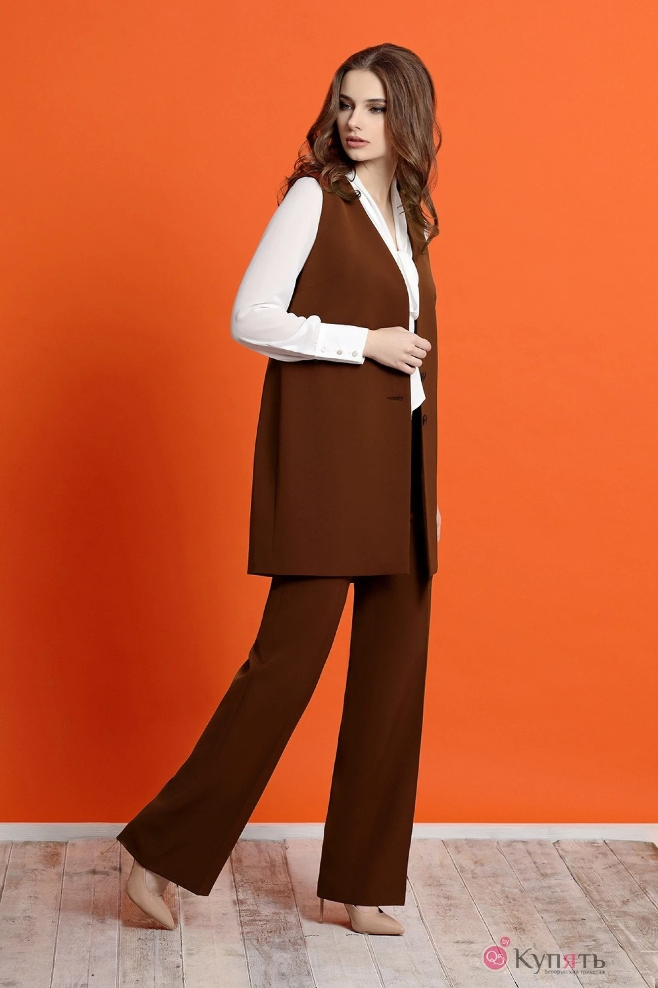 жилет с брюками - ПЭ 93%, спандекс 7%; блуза - ПЭ 100% (креп-шифон).