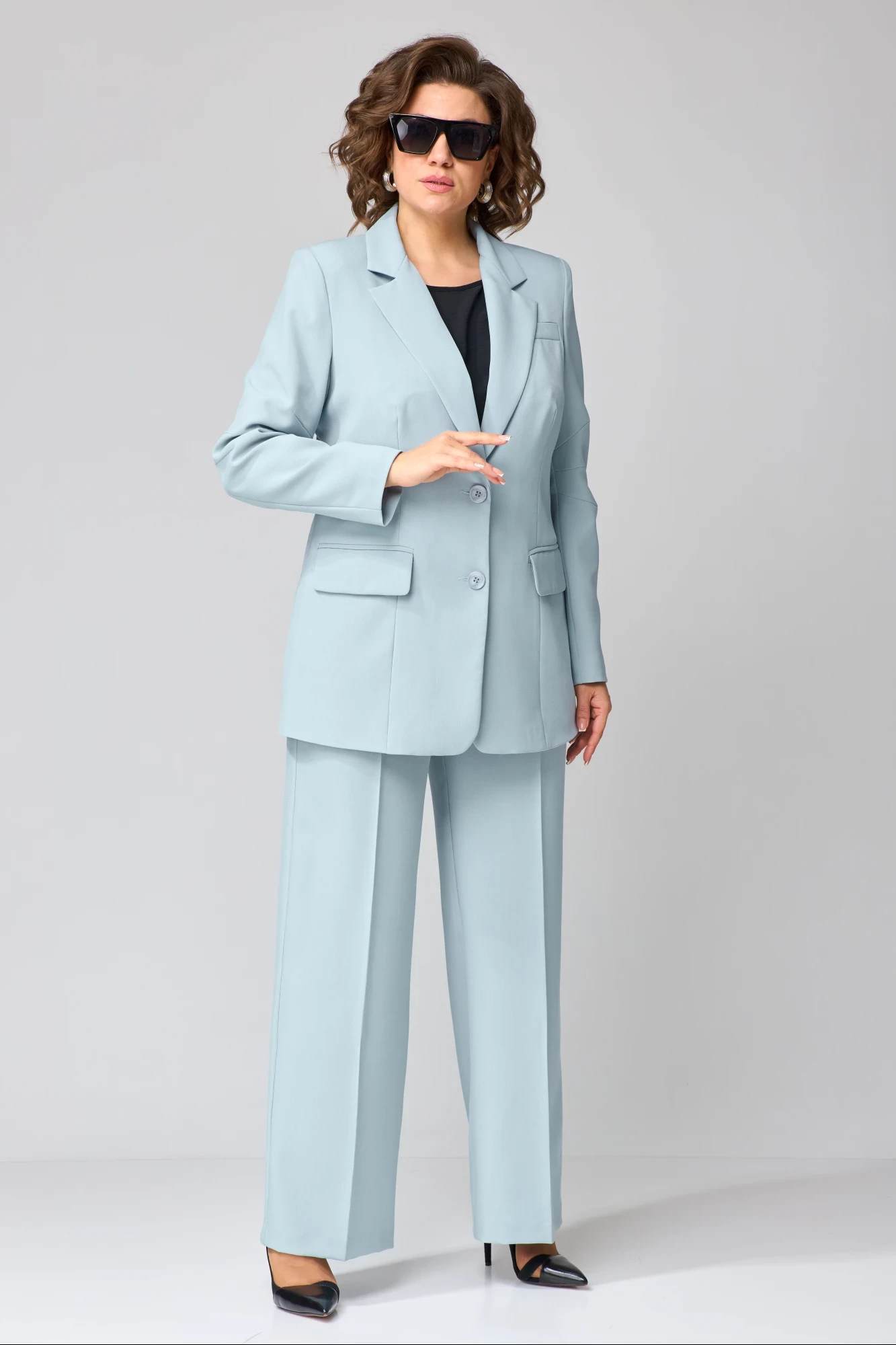 Комплект женский, состоящий из жакета и брюк, выполнен из однотонной костюмно-плательной ткани.