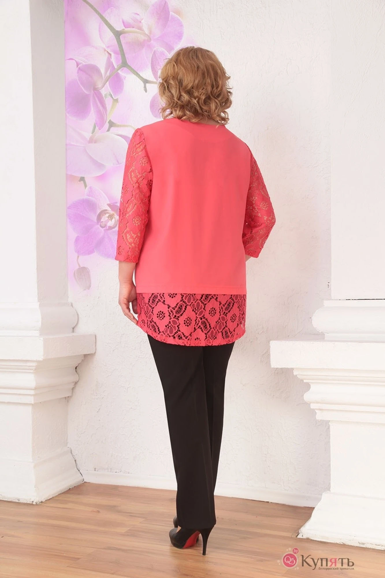 Брючный костюм Орхидея Люкс 718 коралл/черный