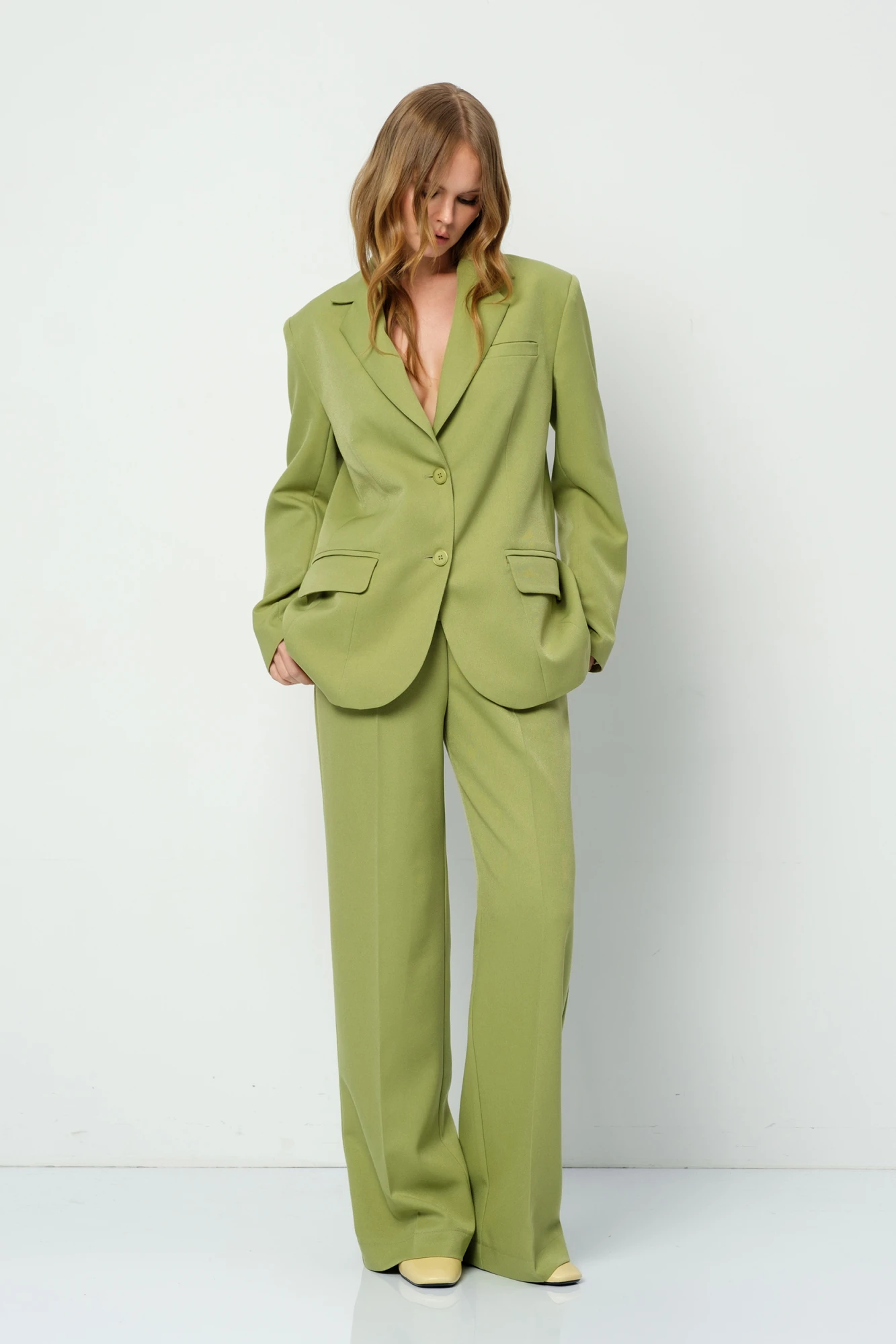 Детали: жакет прямого силуэта, расширенная линия плеч, пиджачный воротник, перед с прорезными функциональными карманами, однобортная застежка на петли и пуговицы, спинка со средним швом и шлицей, рукава втачные двухшовные, жакет на подкладке.