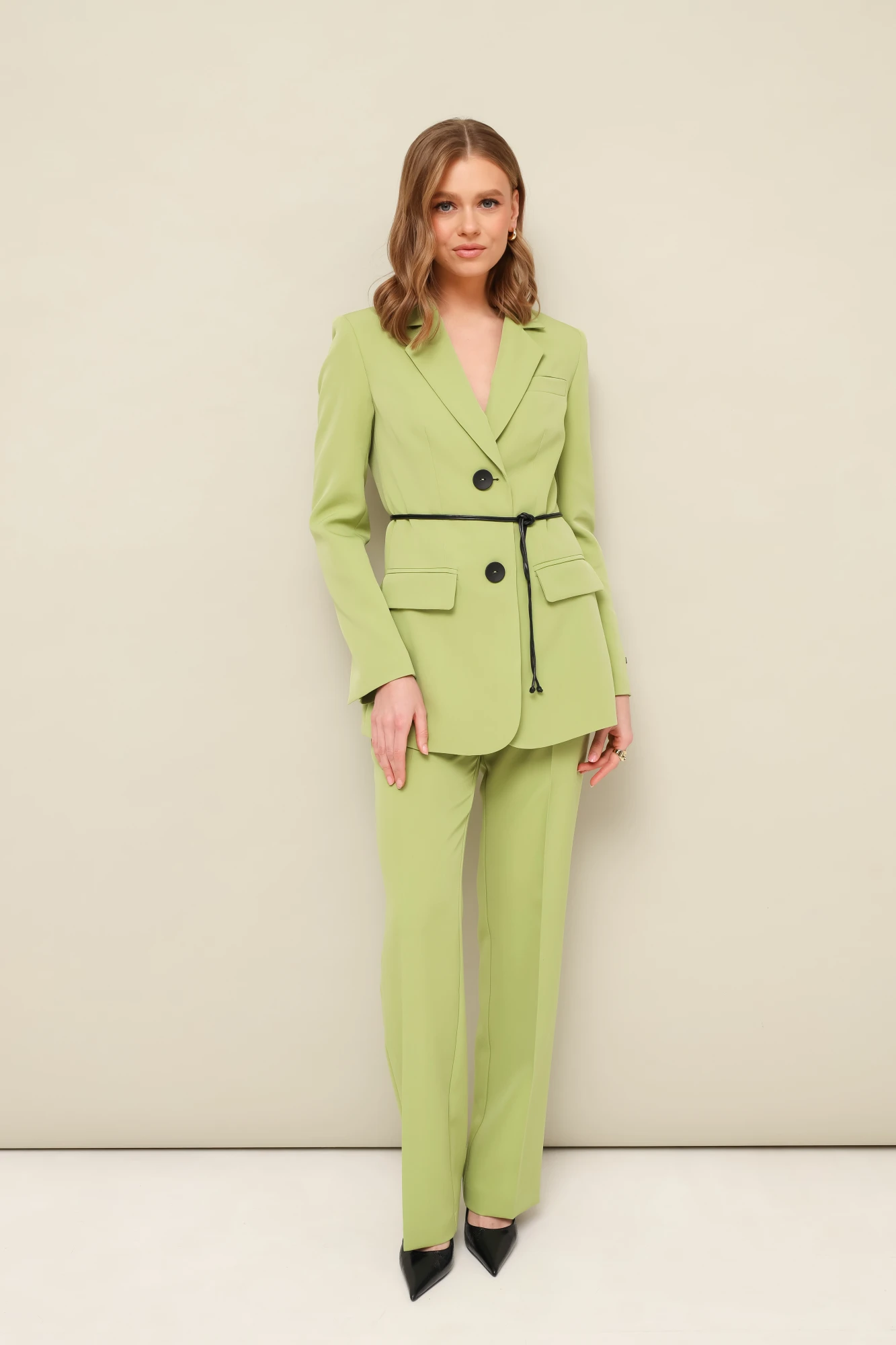 "Комплект 2-предметный, состоящий из жакета и брюк, выполненный из костюмной ткани.
