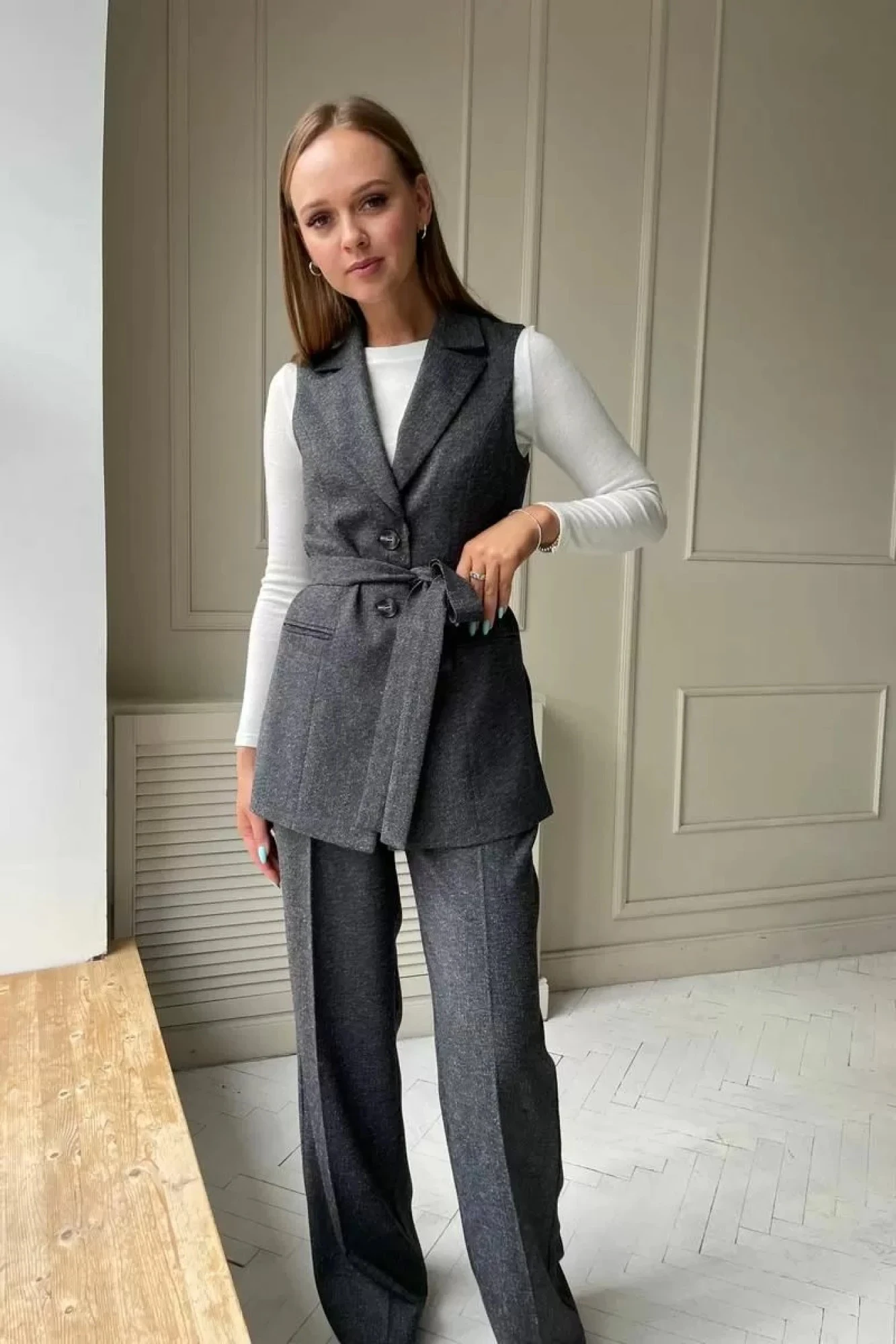 Комплект тройка: жилет, джемпер и брюки.