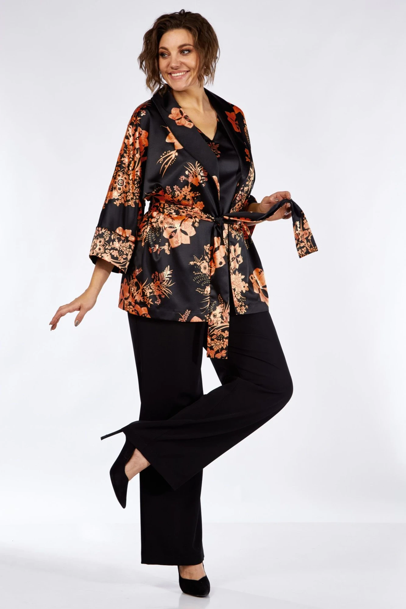 Блузка и жакет-кимоно 100 пэ. Брюки пэ 95, спандекс 5.
