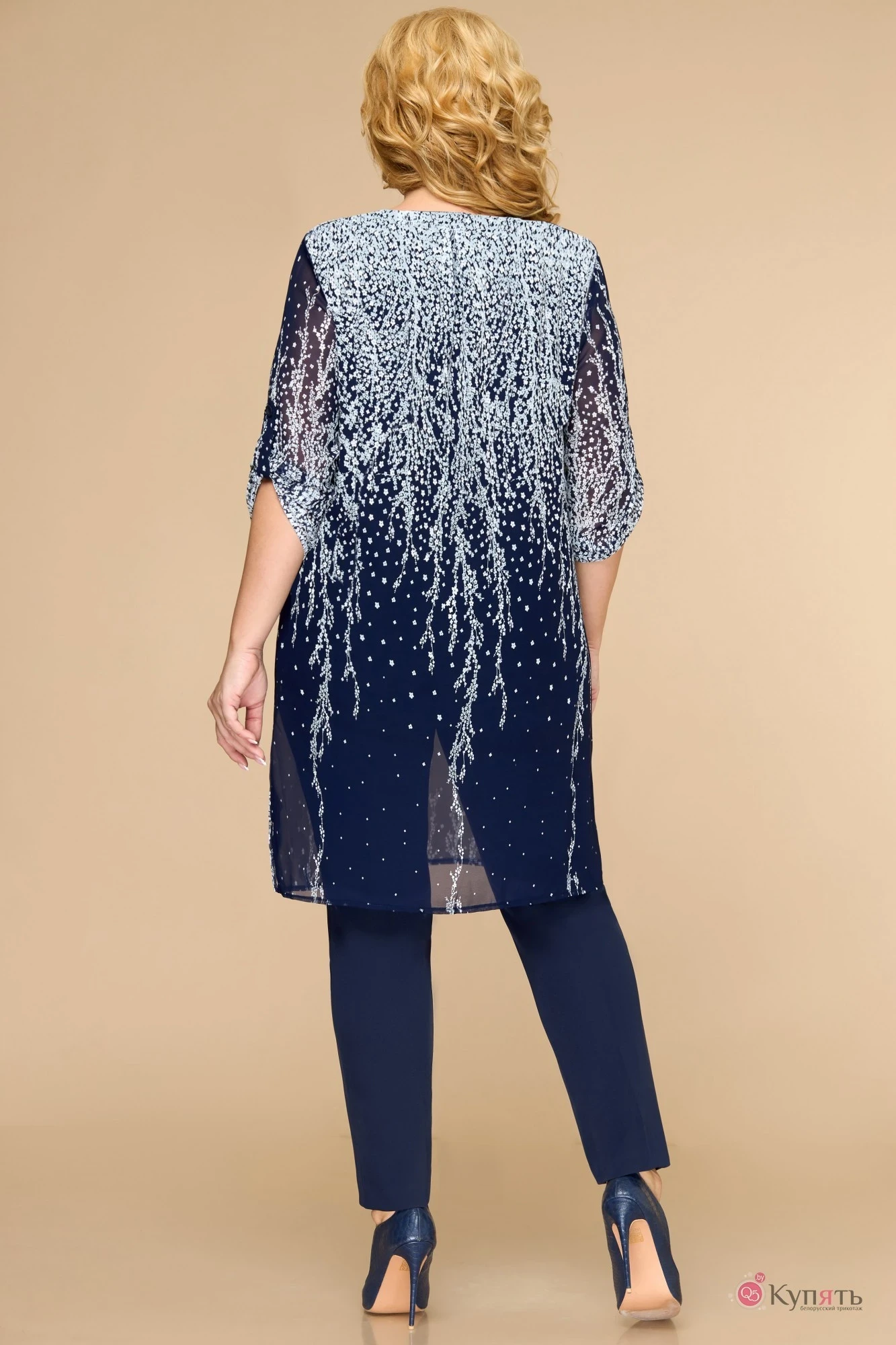 Брючный костюм Svetlana-Style 1394 синий+цветы