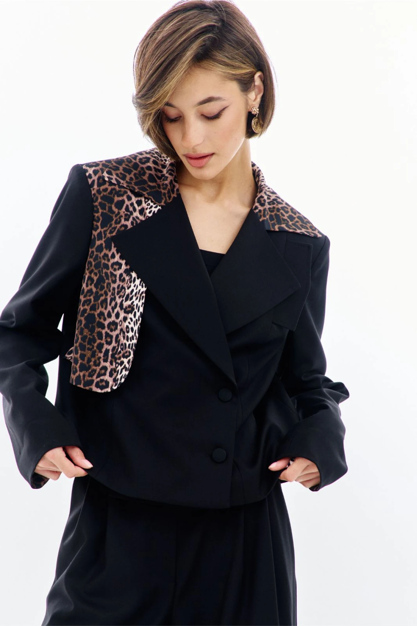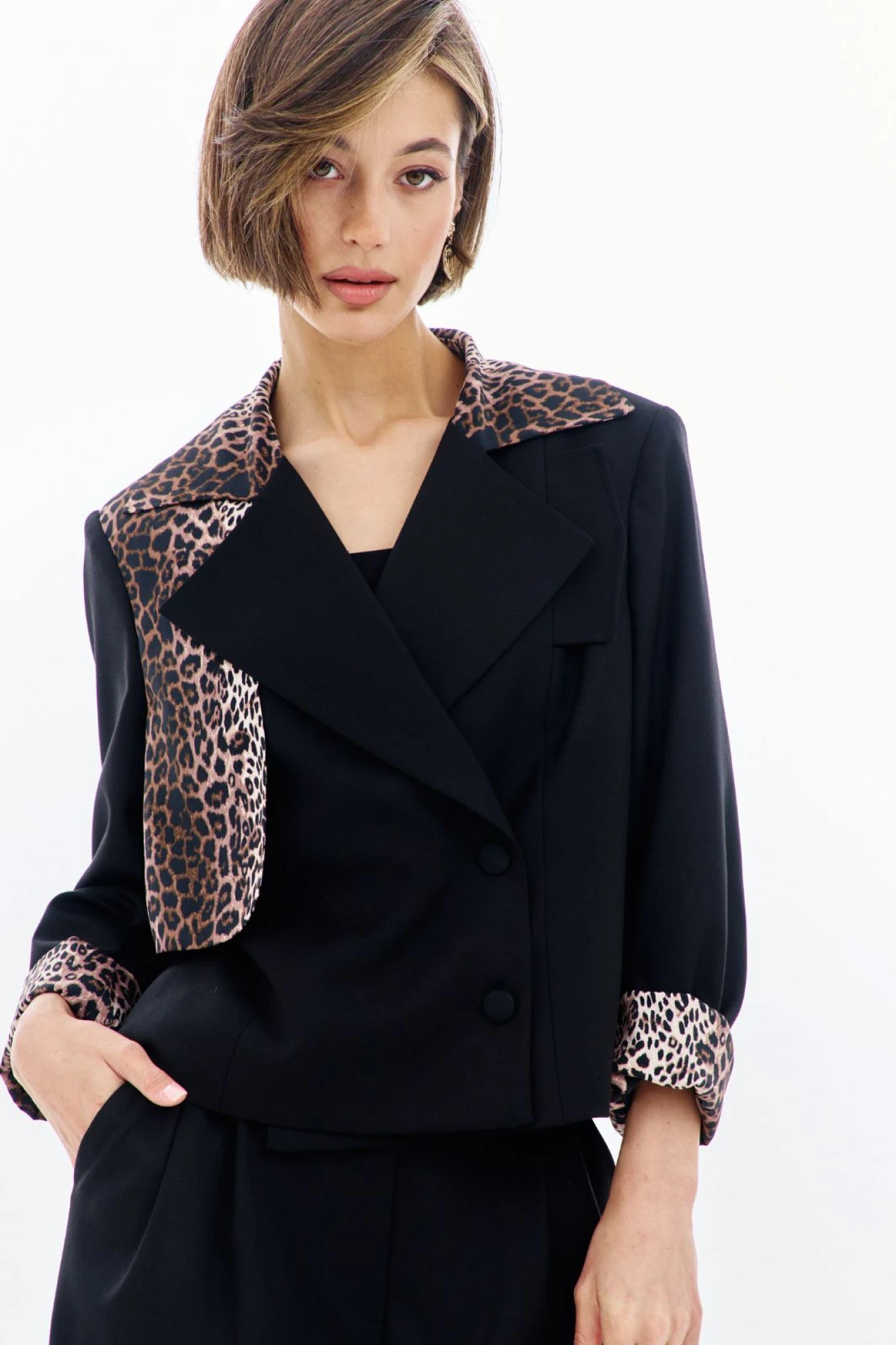 -отлетная кокетка, воротник и обтачка рукава с леопардовым принтом