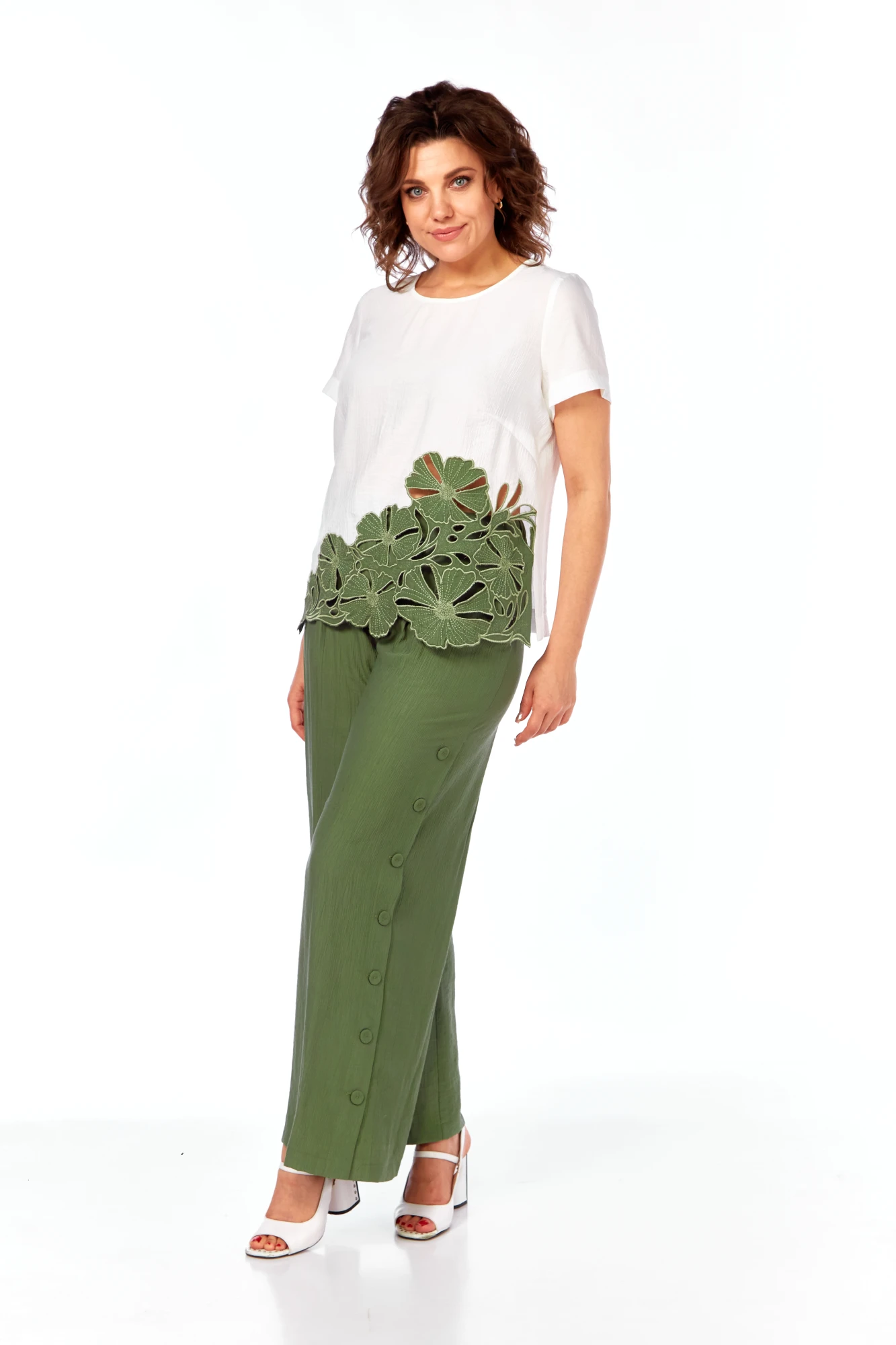 Брючный костюм Rishelie 989 мох+белый двойка