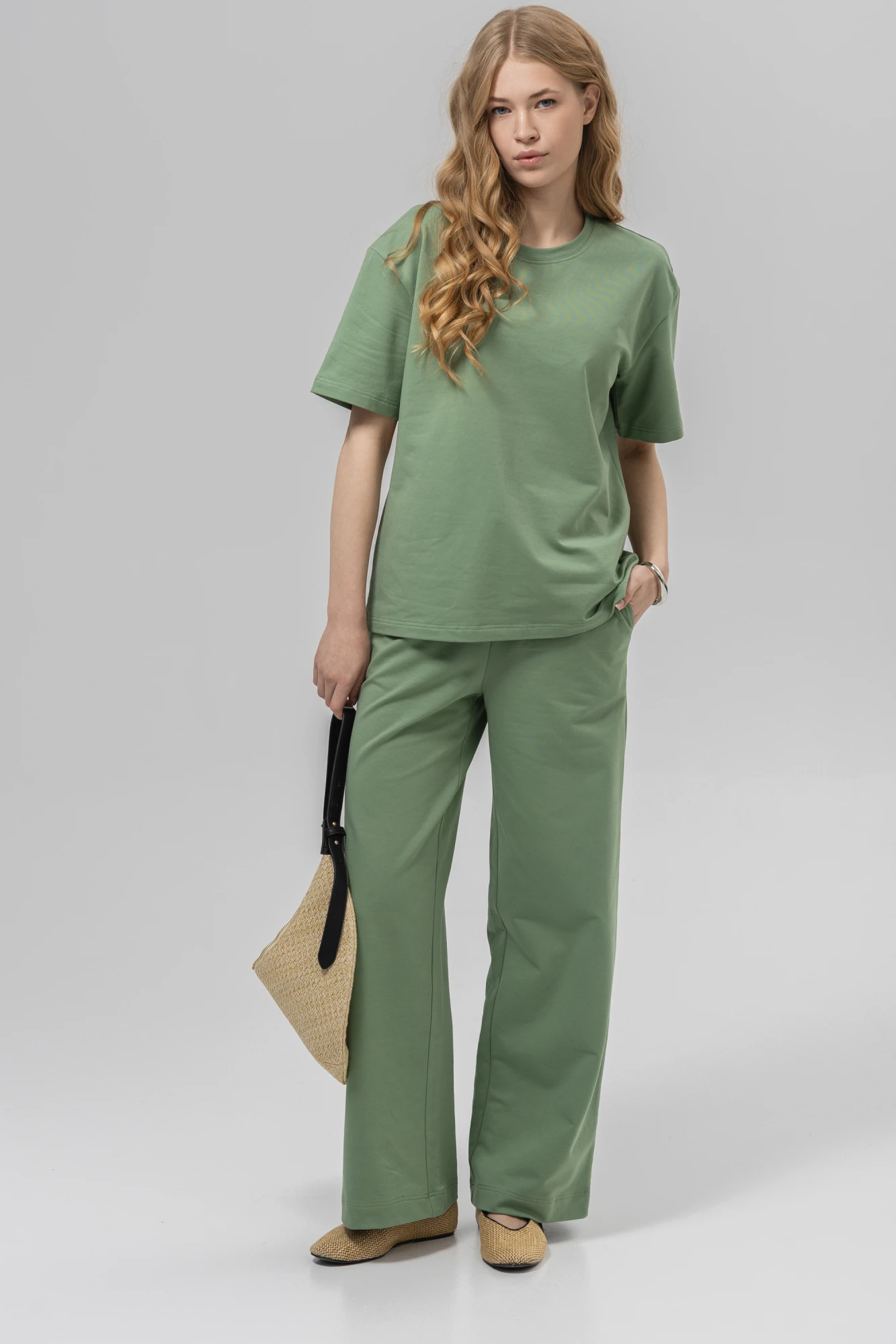 Этот модный костюм из мягкого трикотажа станет идеальным выбором для создания утончённого и современного образа. Насыщенный цвет придаёт костюму элегантность и универсальность, а свободный крой обеспечивает комфорт и свободу движений. Костюм можно дополнить стильной сумкой, лёгким шарфом или аксессуарами, чтобы создать завершённый и модный образ. Он отлично сочетается с кроссовками или туфлями на низком ходу, подходящими как для повседневных, так и для деловых мероприятий.