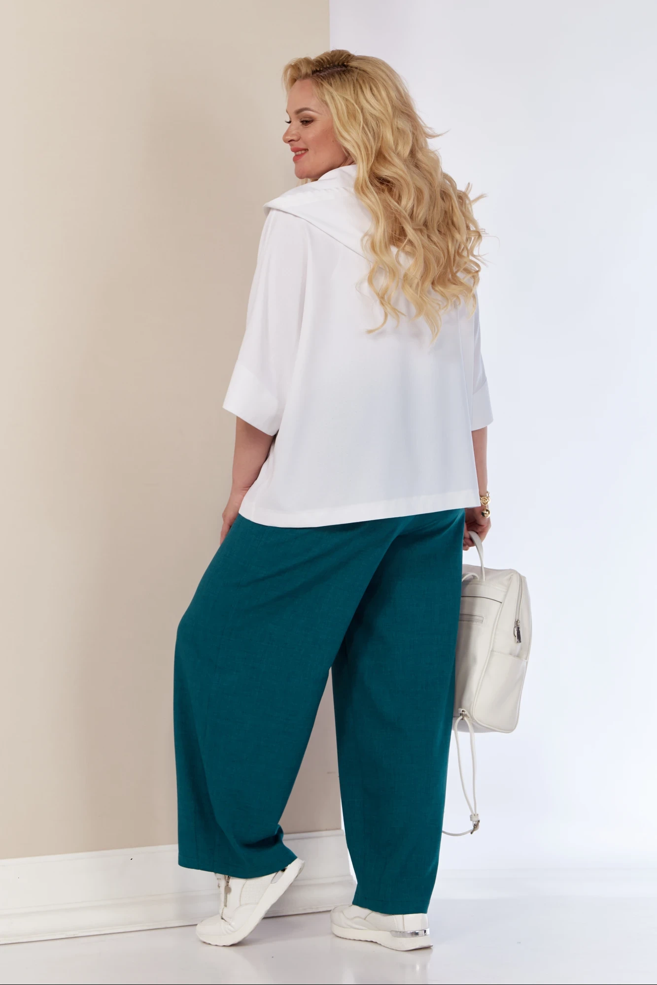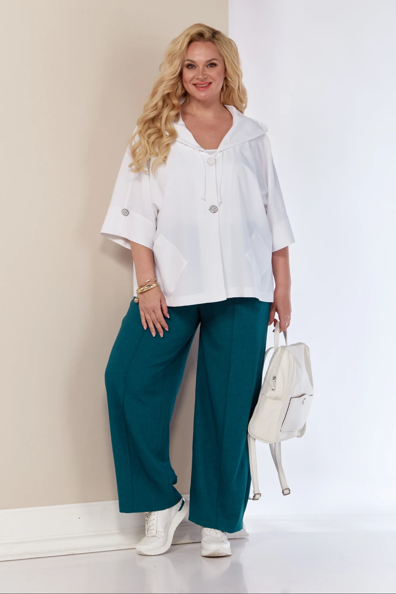 Качественная льняная ткань, из которой выполнена модель, придают легкости и комфорт. Невесомый летящий наряд не стесняет движений и комфортно садится по фигуре. Это деловой образ для офиса и стильный нарядный комплект на каждый день. Он подходит как для весны, так и лета, а также является отличным вариантом для повседневного гардероба.