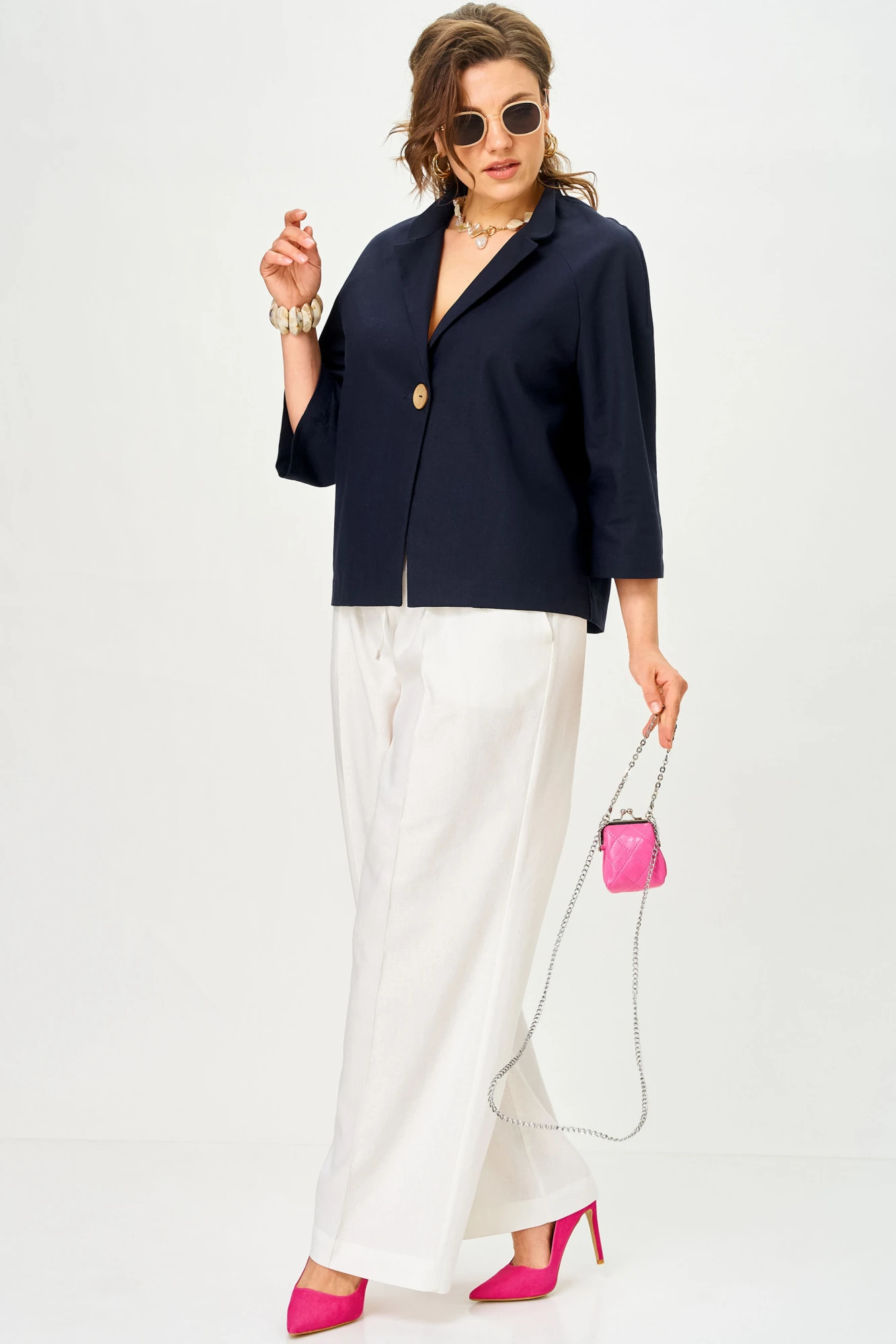 Комплект брючный летний . Состоит из жакета выполненного изо льна. Свободная посадка, жакет без подкладки. Рукав реглан. Застежка на одну пуговицу.