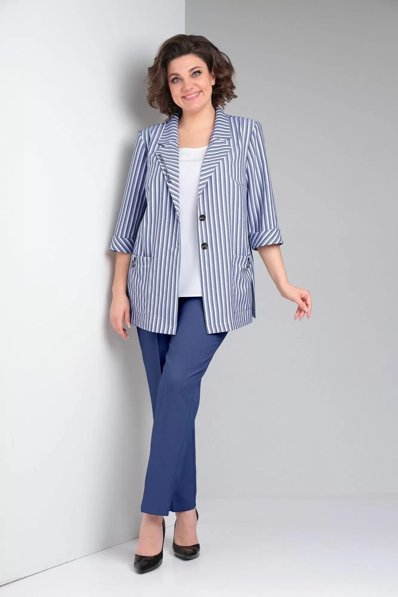 Брючный костюм Тэнси 371 синий тройка