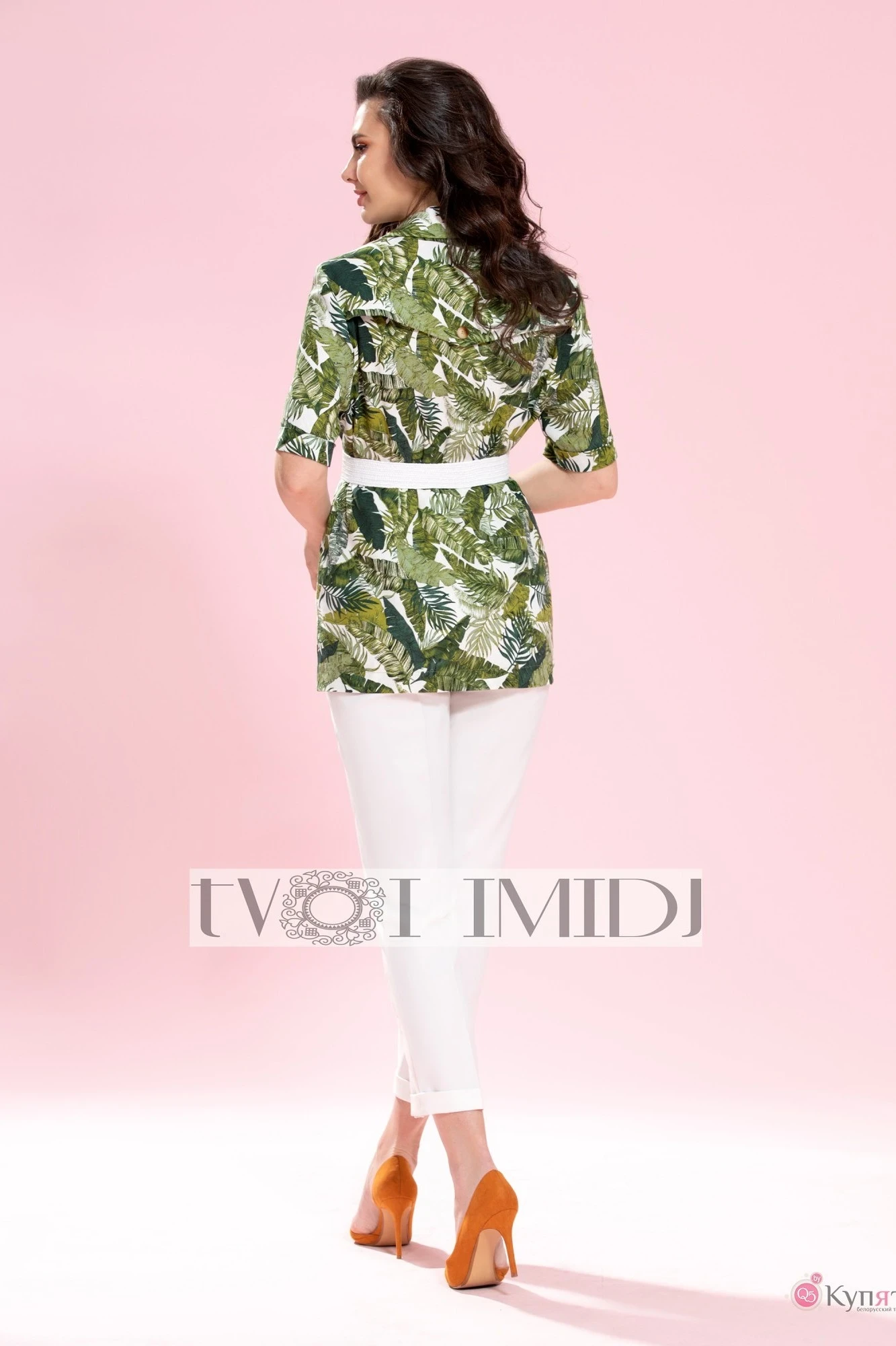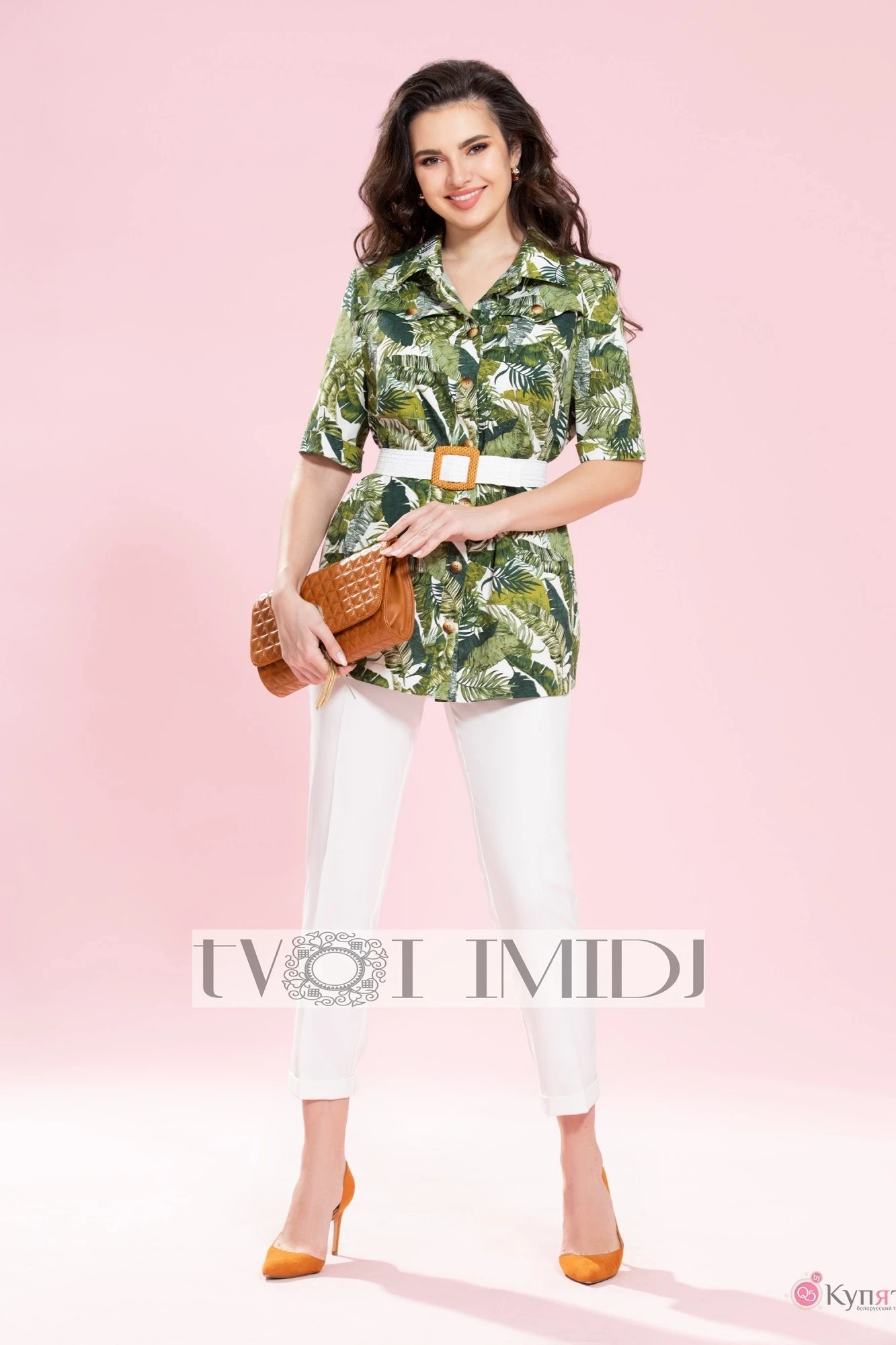 Блуза: 55% лён, 45% вискоза Брюки: 65% п/э, 34% вискоза, 1% спандекс